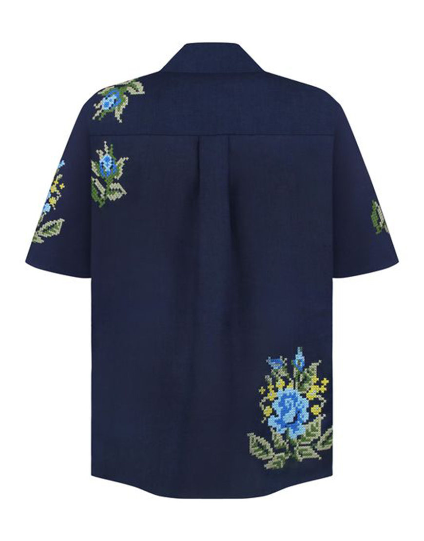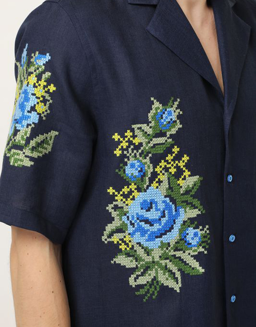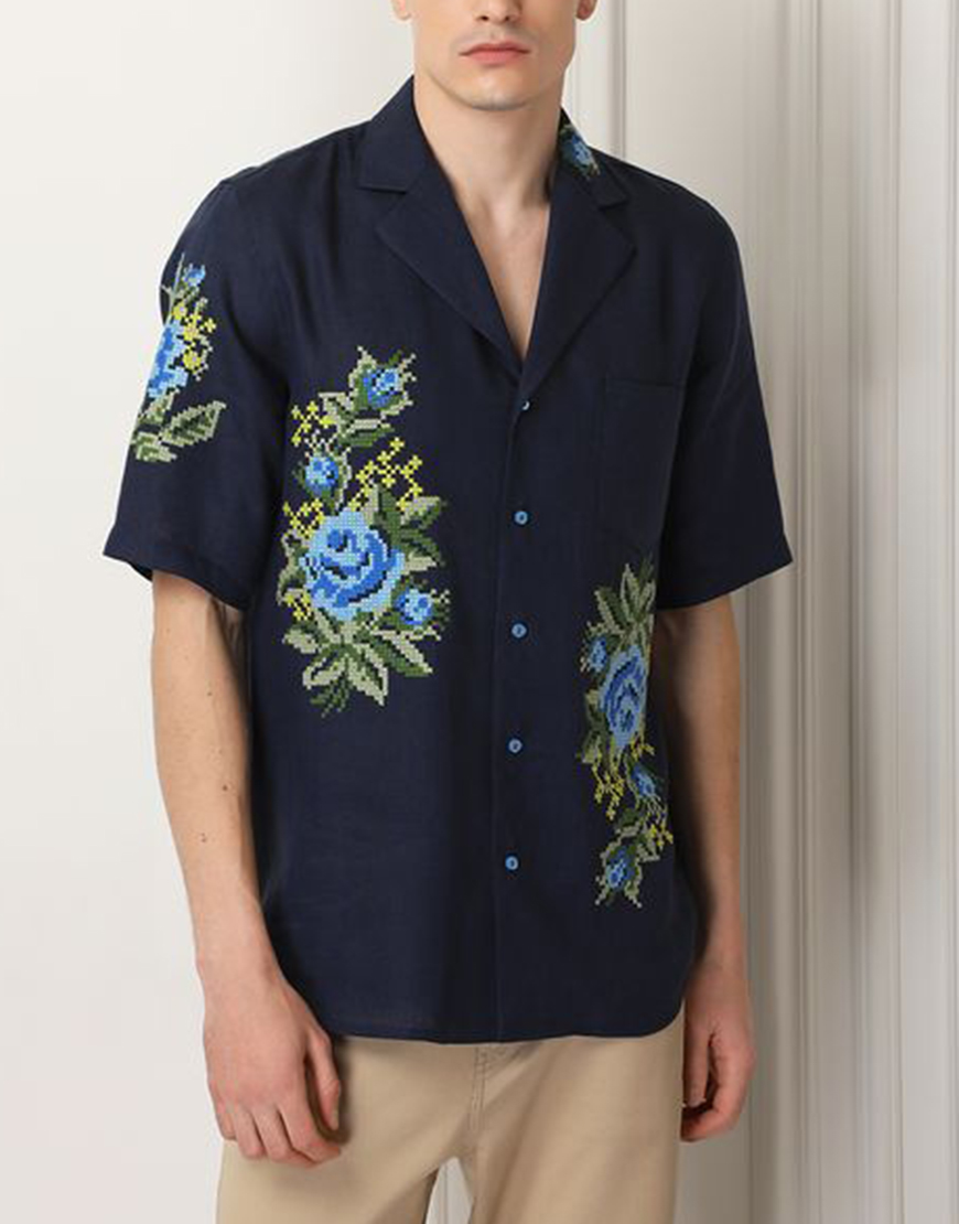 Доставка протягом 3-10 робочих днівСорочка, вишита квітковим орнаментом. Має застібки по всій довжині та зручну кишеню попереду. Відкладний комір, вільний крій та гармонійне поєднання кольорів роблять цю сорочку ідеальним варіантом як урочистих заходів, так і для літнього обаза в стилі casual.