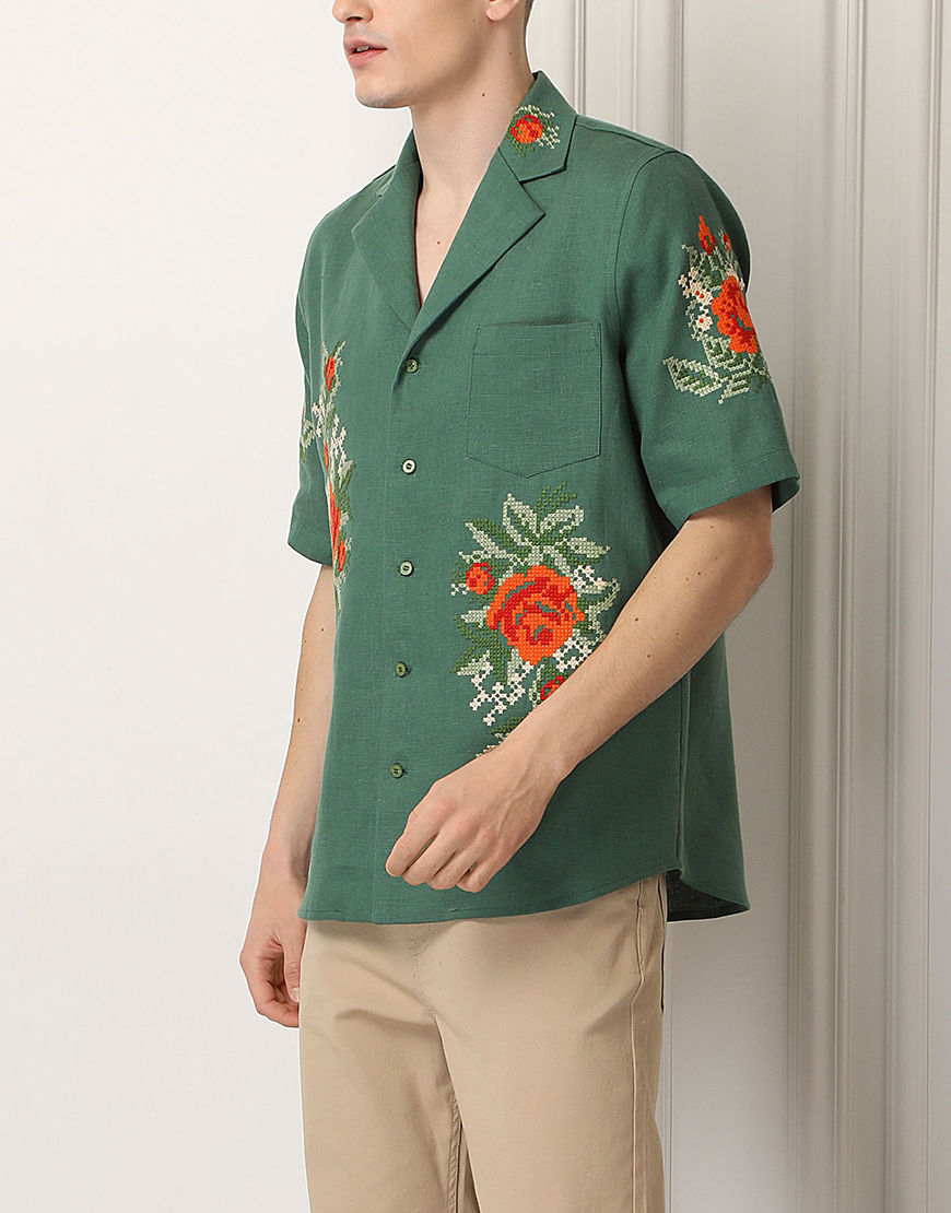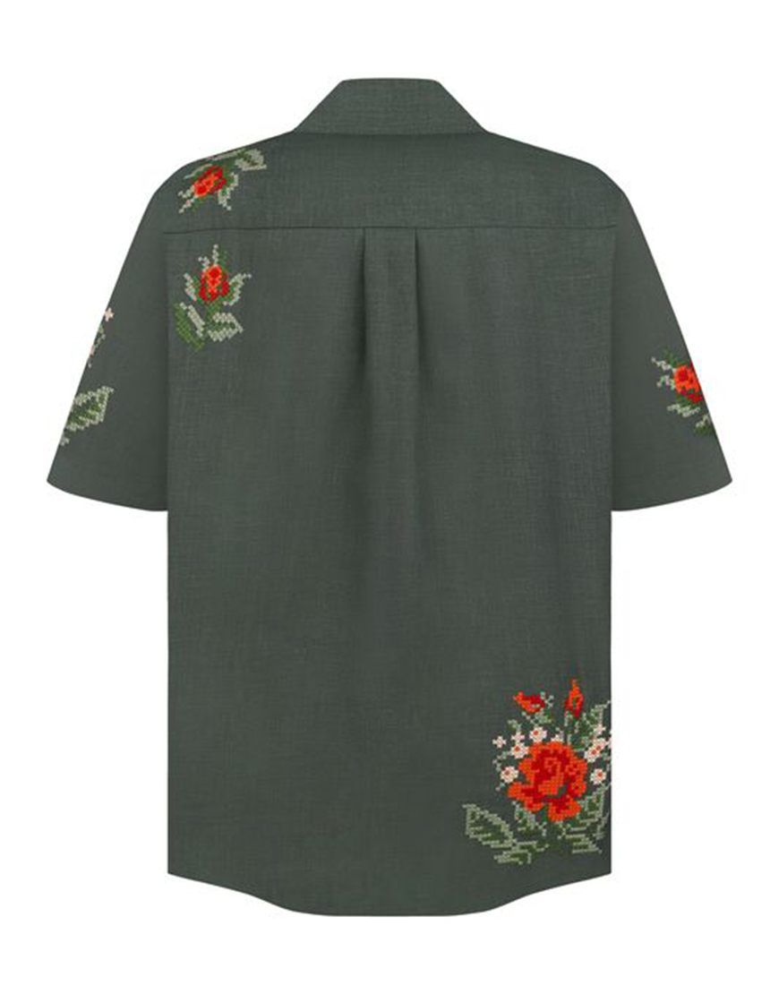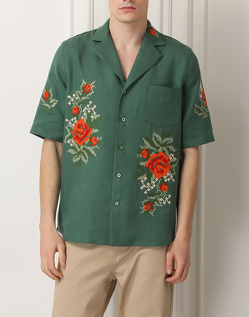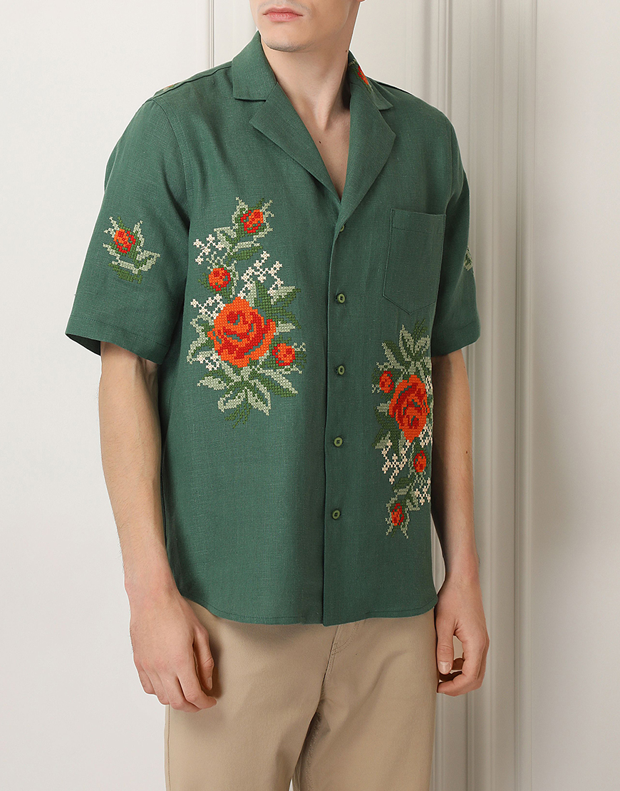Доставка протягом 3-10 робочих днівСорочка, вишита квітковим орнаментом. Має застібки по всій довжині та зручну кишеню попереду. Відкладний комір, вільний крій та гармонійне поєднання кольорів роблять цю сорочку ідеальним варіантом як урочистих заходів, так і для літнього обаза в стилі casual.
