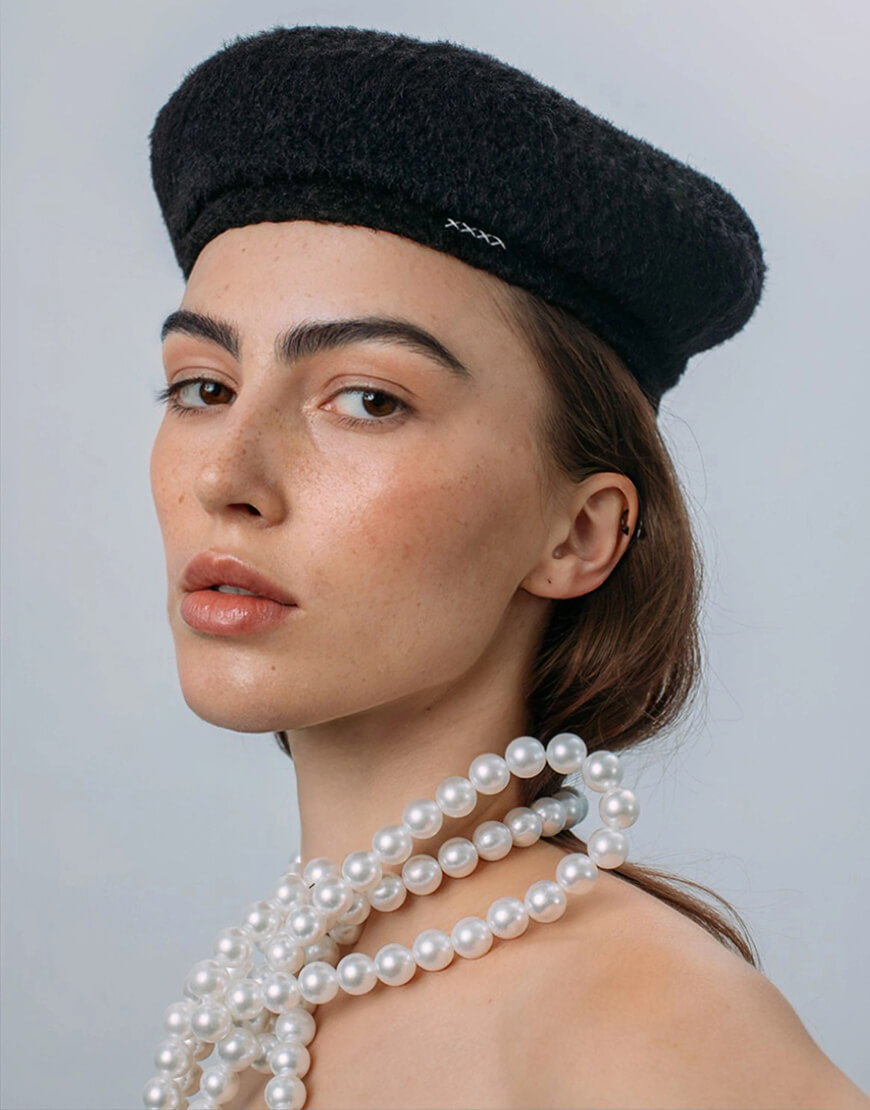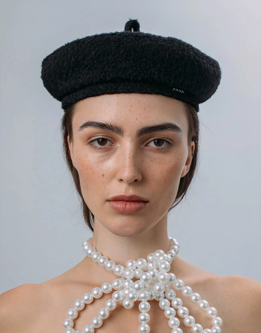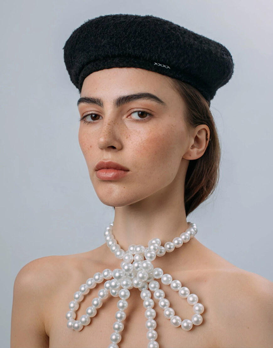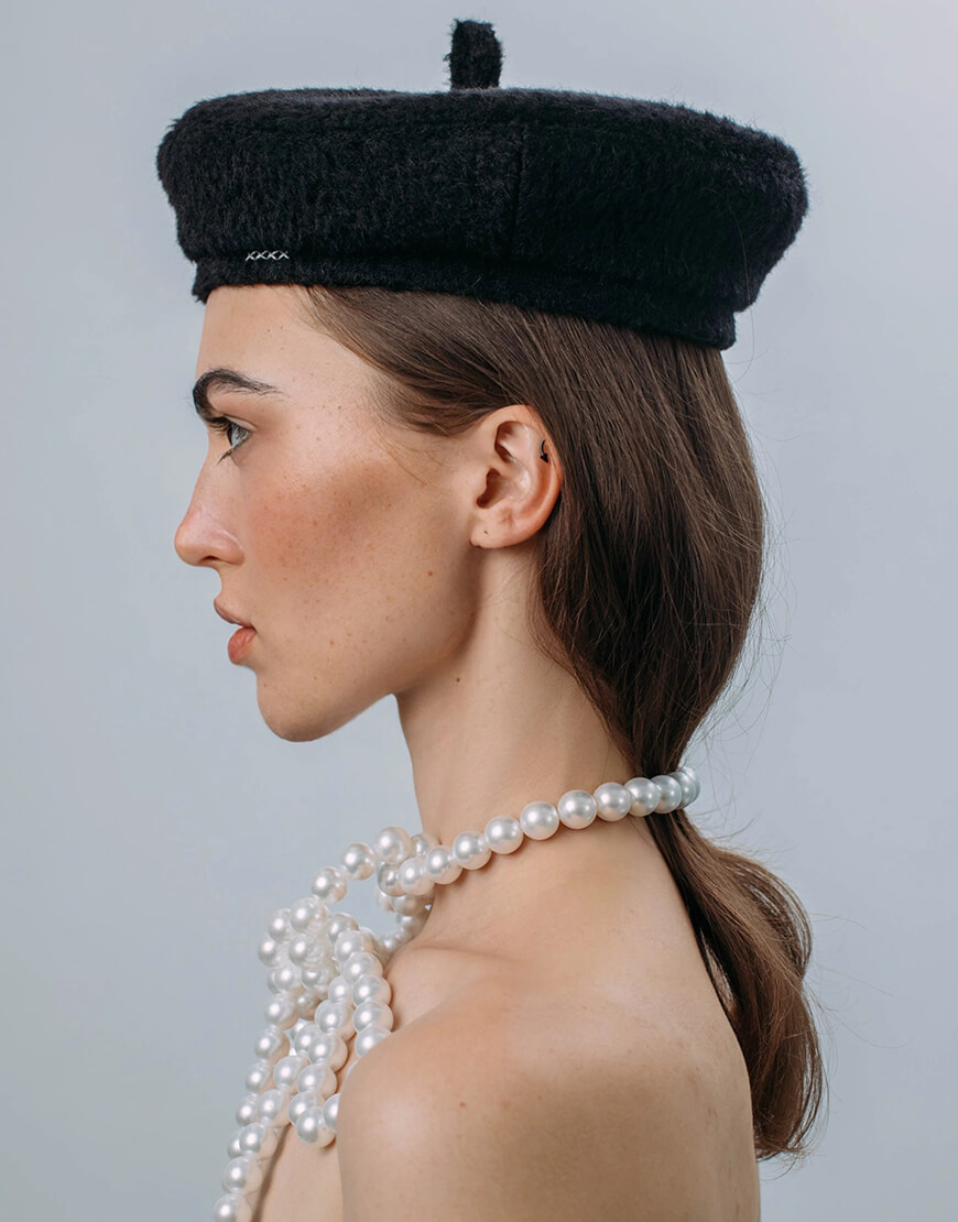 Класичний чорний берет з білими вишитими хрестиками