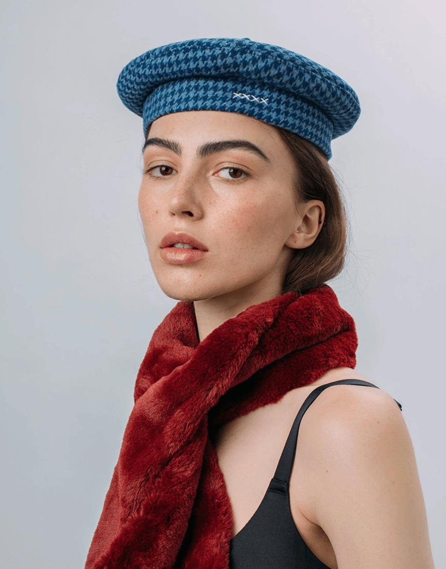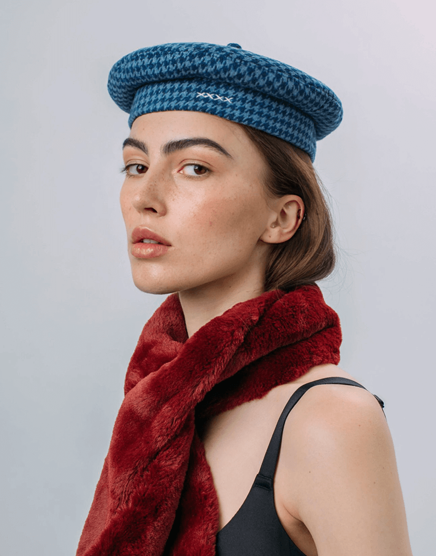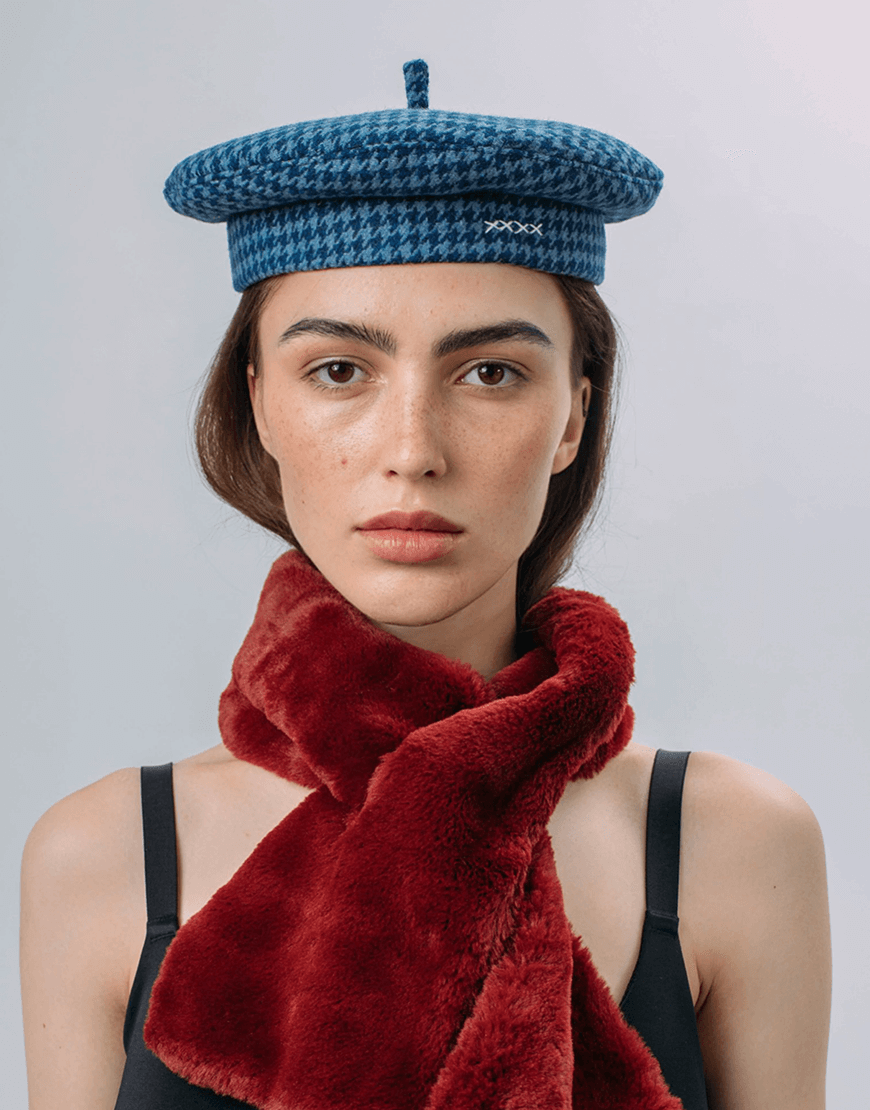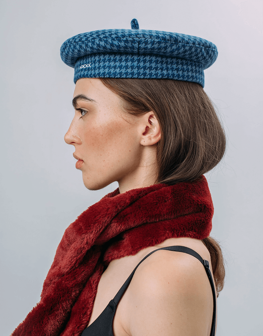 Доставка протягом 3-6 робочих днівБерет з вовняної тканини у клітинку синього кольору