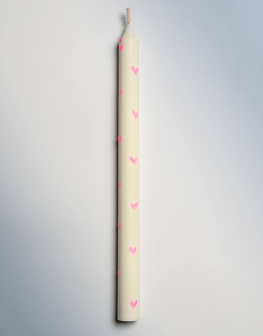 ДоставкаСвічка ручної роботи. Гладка свічка конічної форми. Ця серія має декілька кольорів сердечок (чорні,рожеві, червоні). Натуральний американский (vegan) соєвий віск. Без ароматизаторів. 6-8 годин горіння кожної свічки.