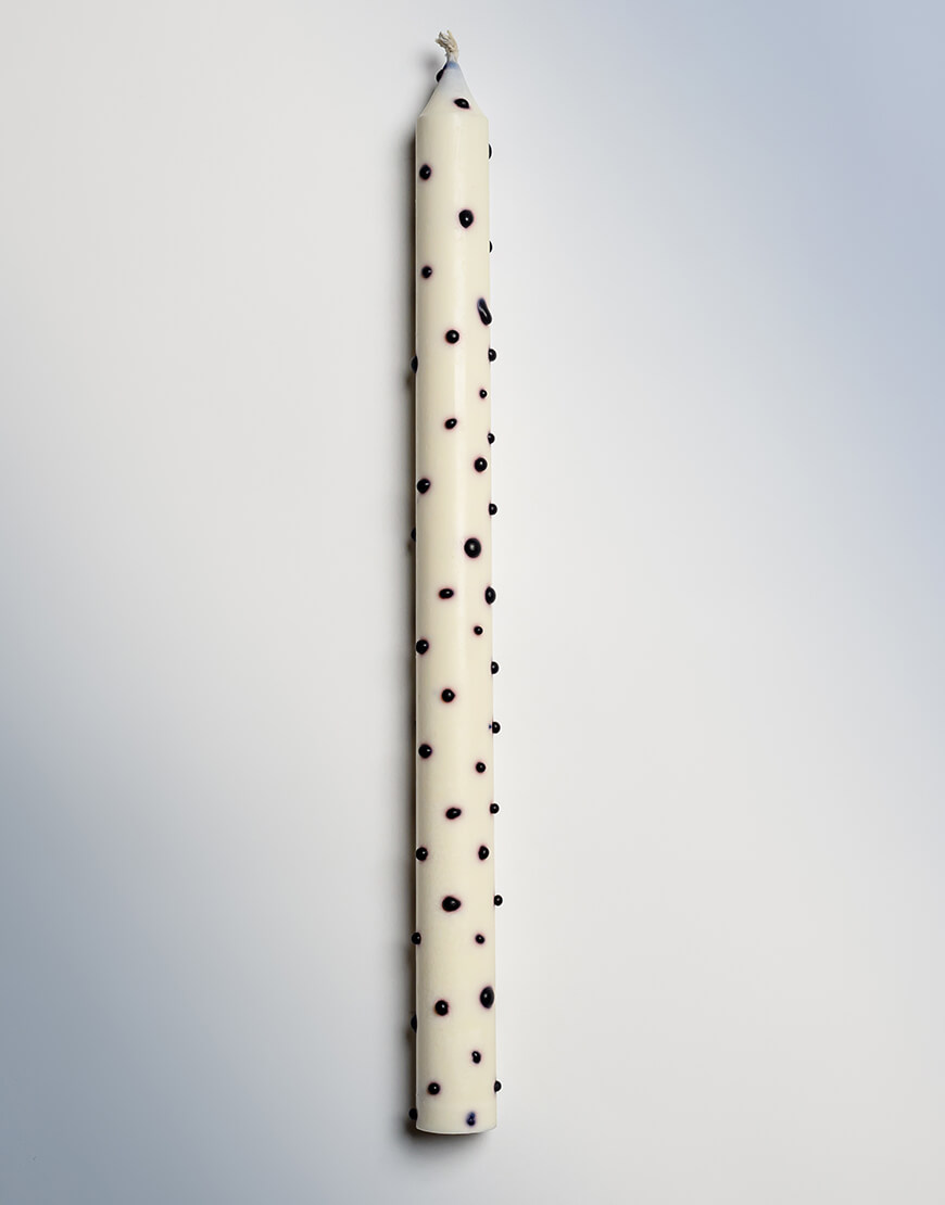ДоставкаСвічка ручної роботи. Гладка свічка конічної форми. Ця серія має крапочки як “Далмитинець”. Натуральний американский (vegan) соєвий віск. Без ароматизаторів. 6-8 годин горіння кожної свічки.