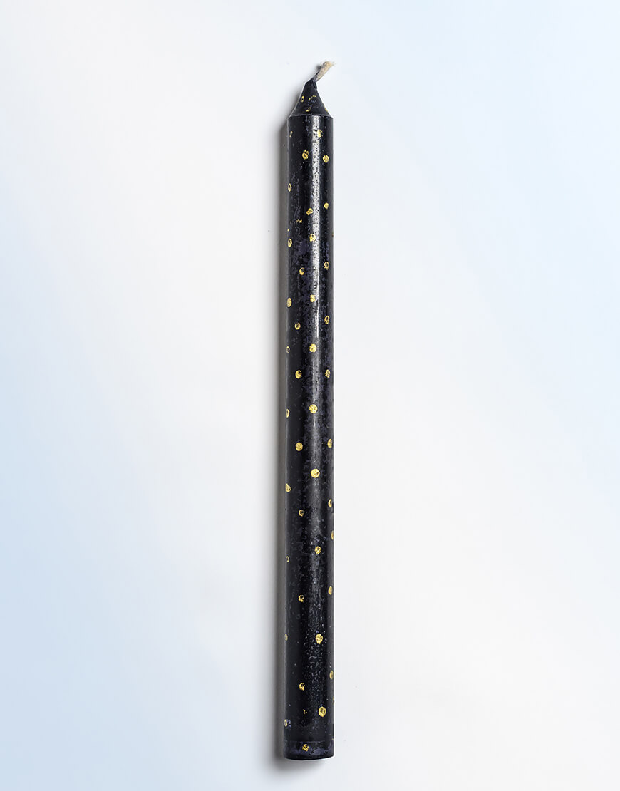 ДоставкаГладка свічка конічної форми з кольоровими цяточками. Натуральний американский (vegan) соєвий віск. Без ароматизаторів. 6-8 годин горіння кожної свічки.