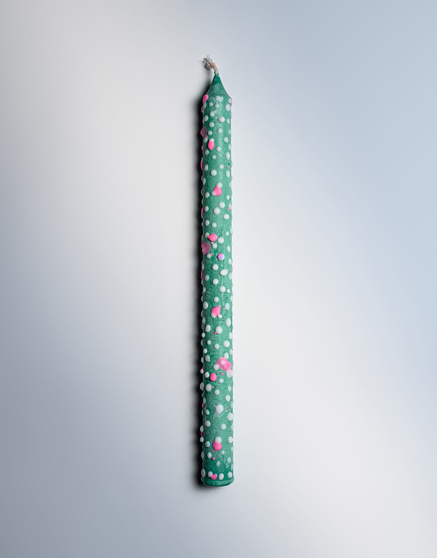 Гладка свічка конічної форми з кольоровими цяточками. Натуральний американский (vegan) соєвий віск. Без ароматизаторів. 6-8 годин горіння кожної свічки.