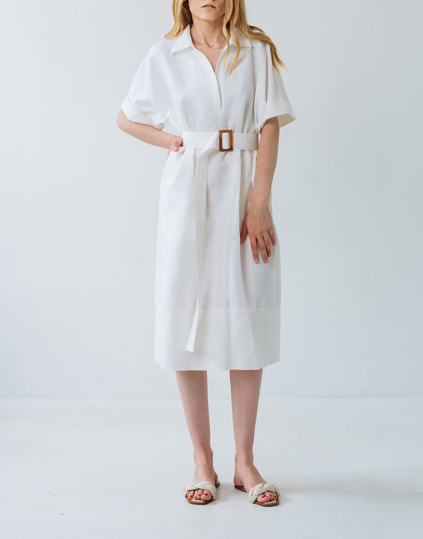 Лляна сукня-поло з кишенями та поясом у стилі Oversize