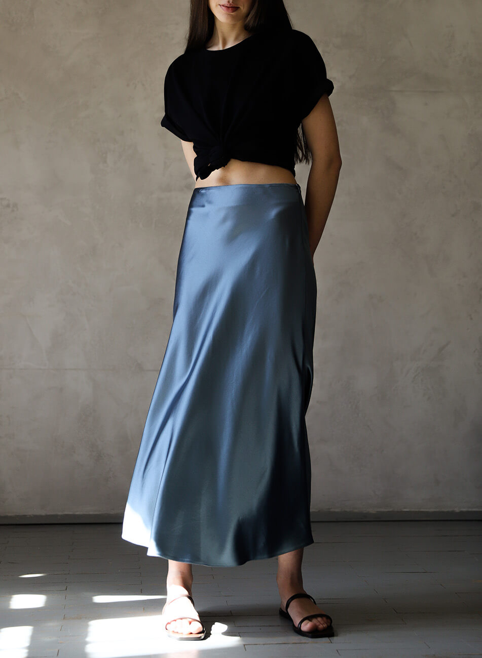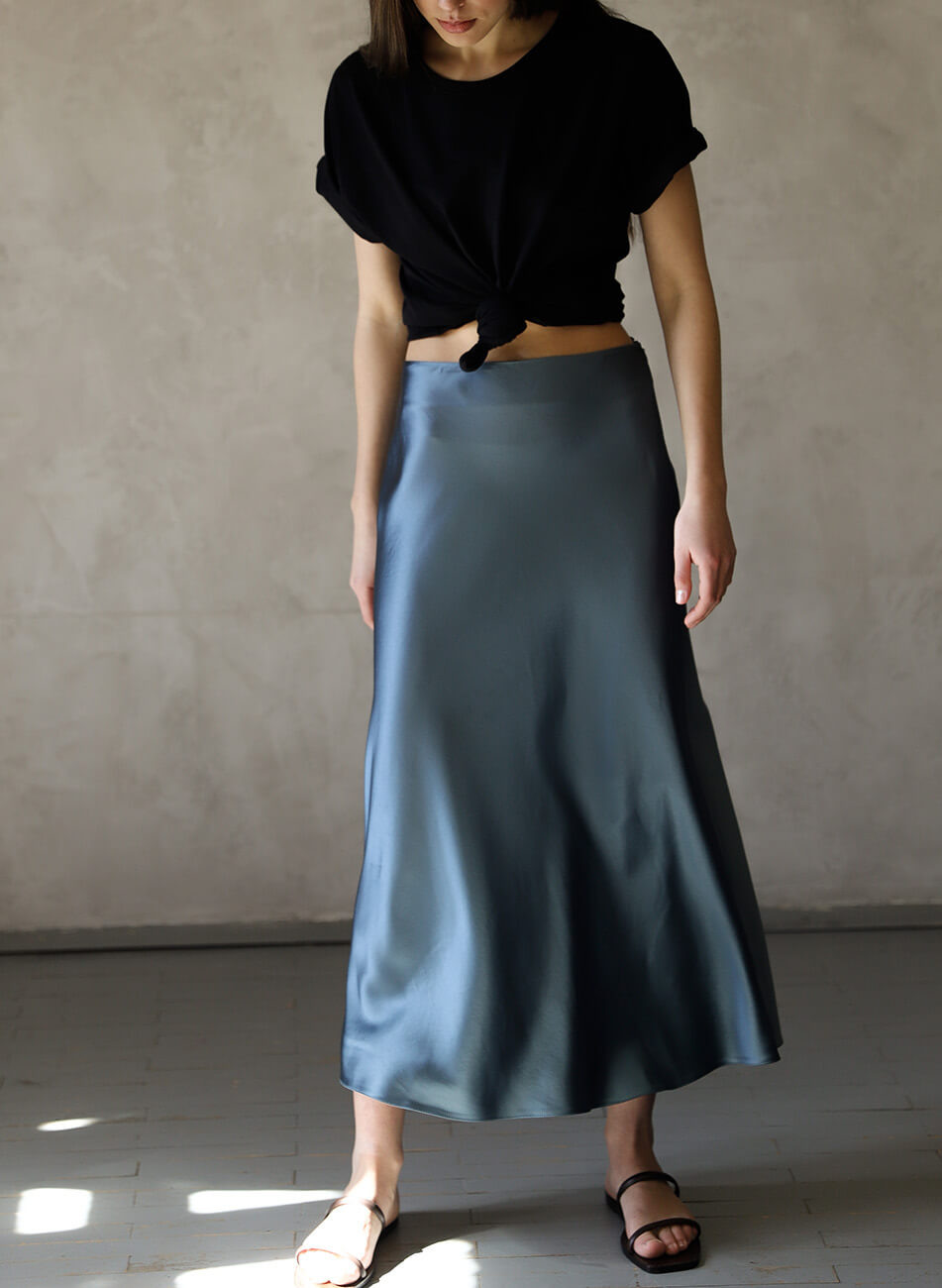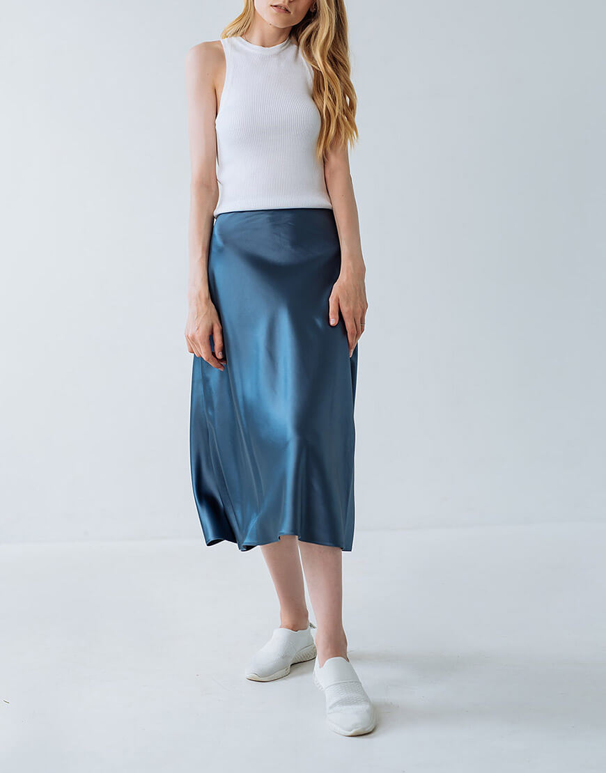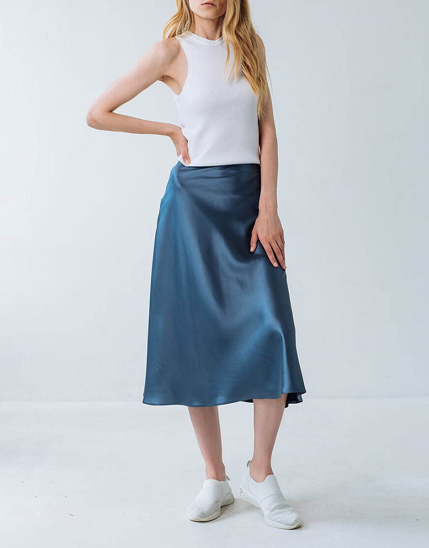 Спідниця А-силуету з високою посадкою. Затіжка на потаємну блискавку ззаду.