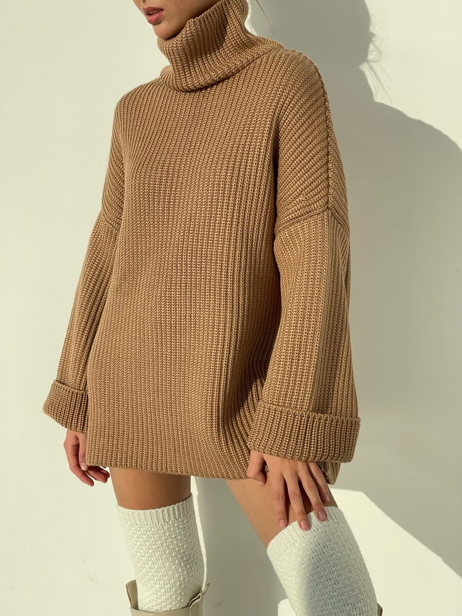 Светр оверсайз прямого крою з горлом і широким рукавом.
