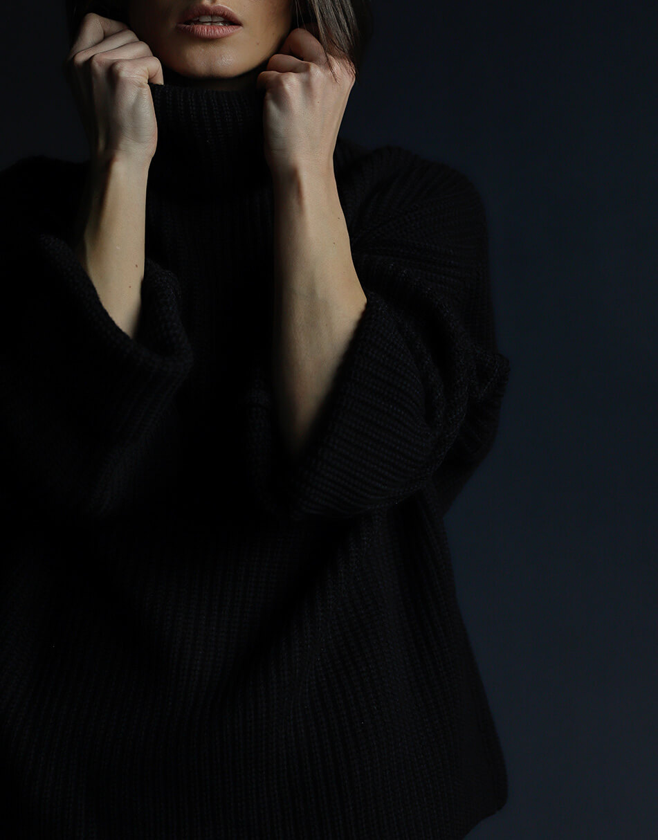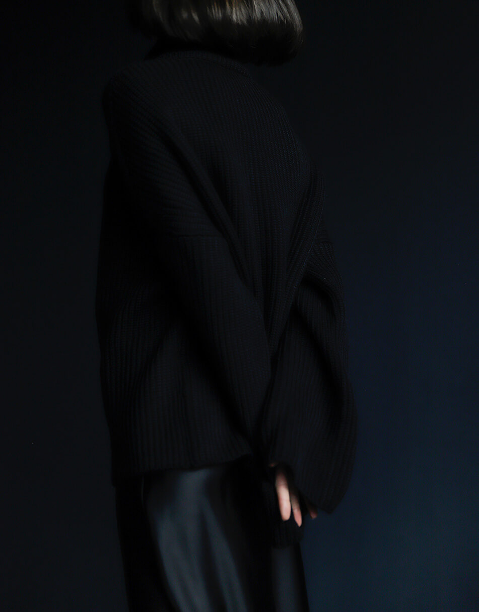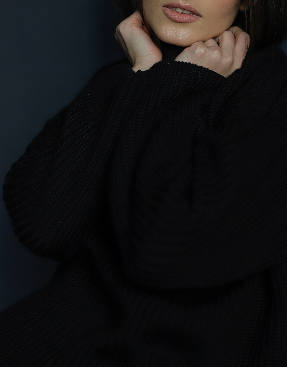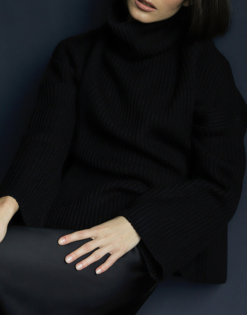 Свитер оверсайз прямого кроя с горлом и широким рукавом.