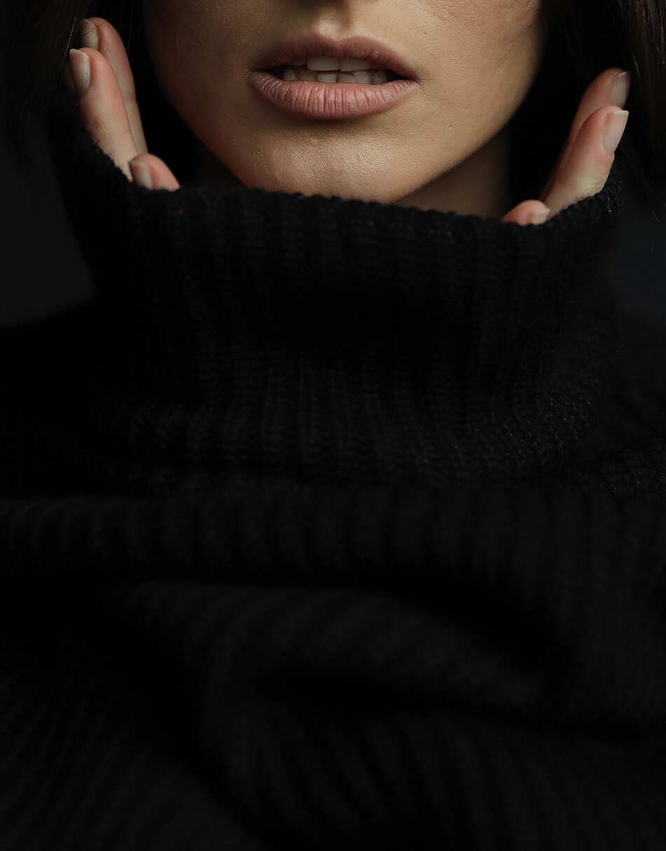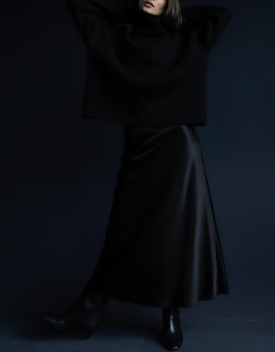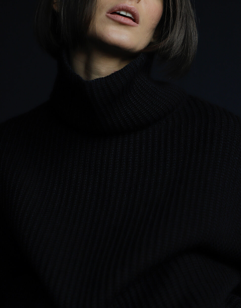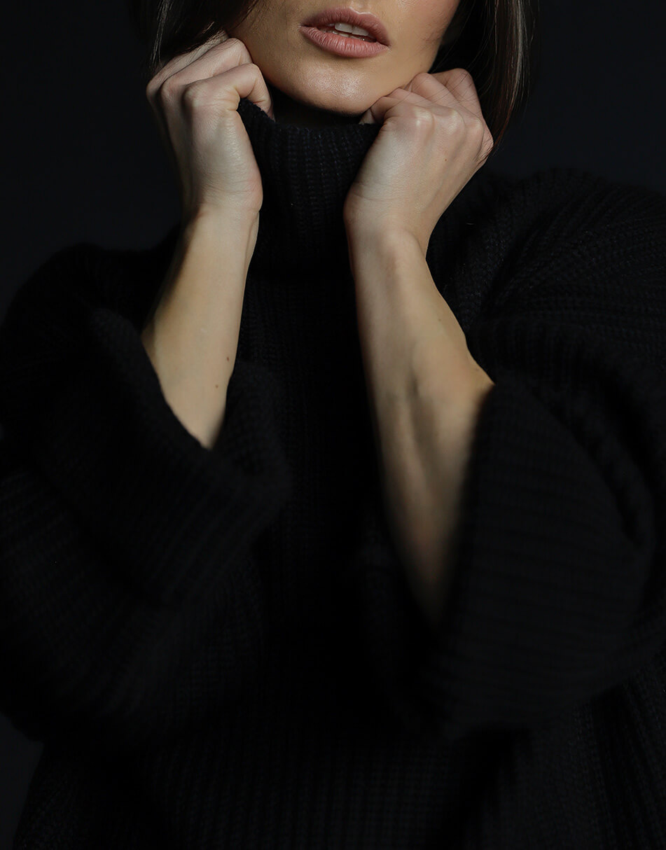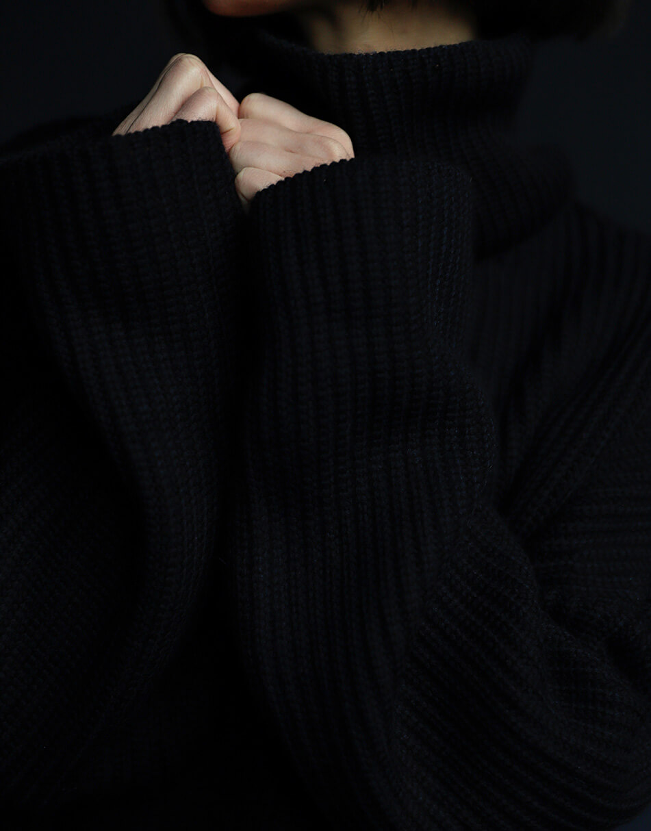 Свитер оверсайз прямого кроя с горлом и широким рукавом.