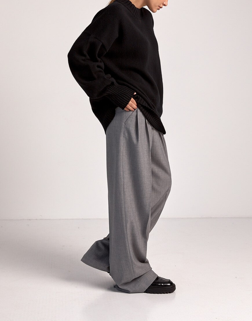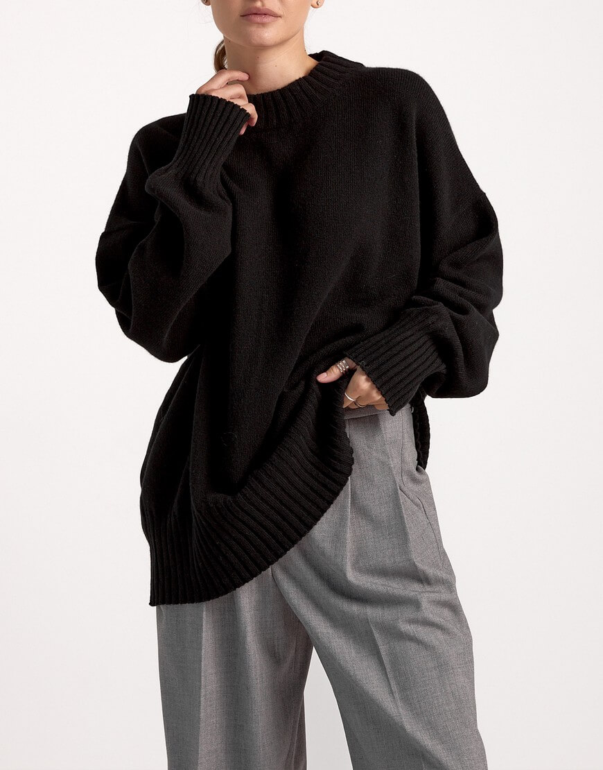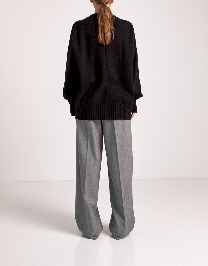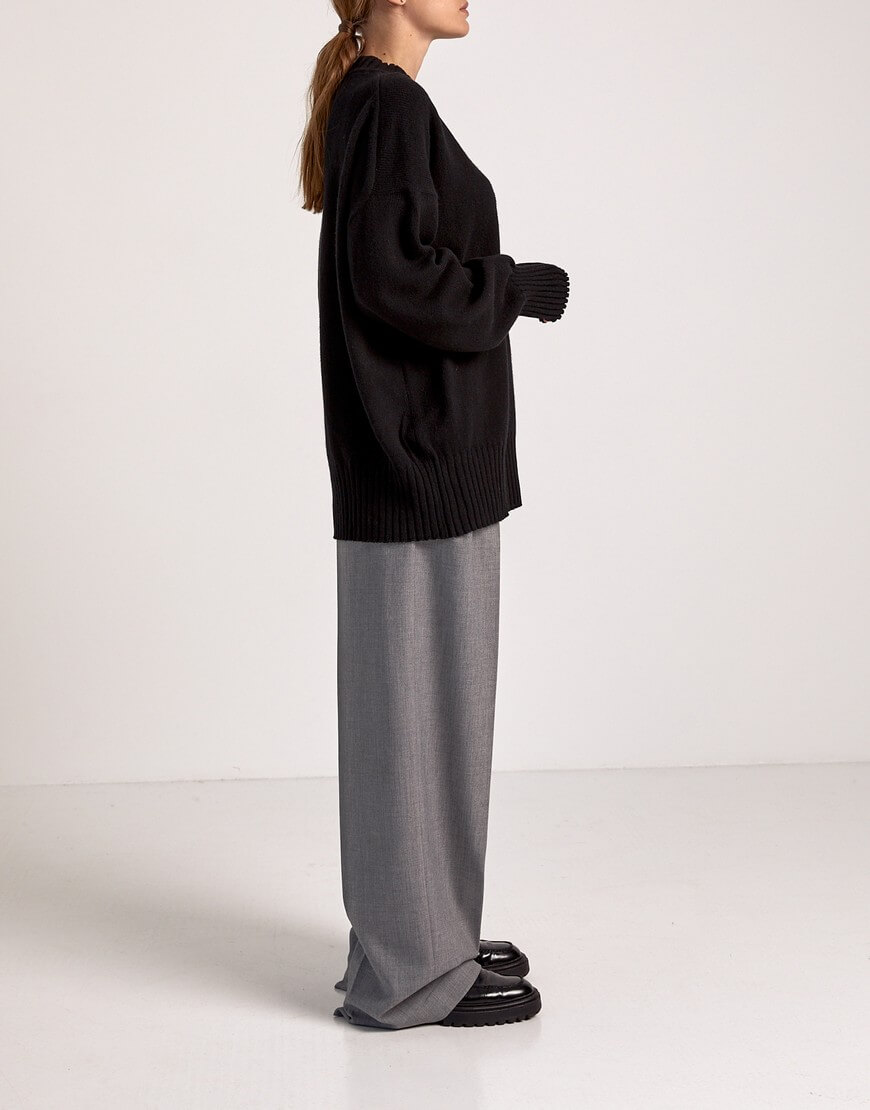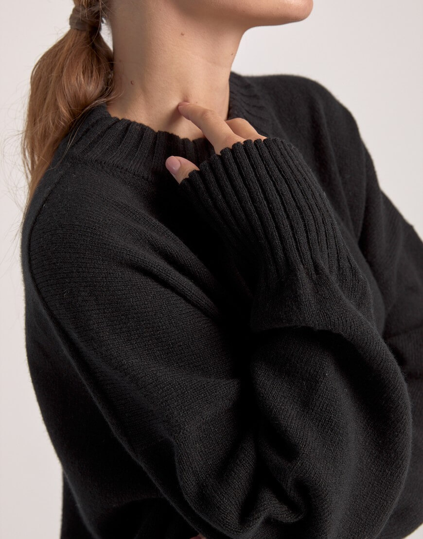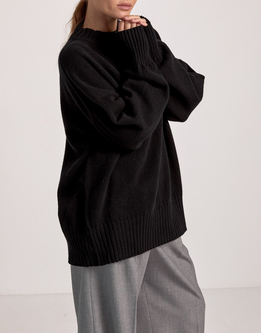 Об’ємний светр вільного крою з круглим вирізом, заниженою лінією плеча та декоративним швом на спині. Вироби, у складі яких є кашеміру не потребують прання після кожного носіння виробу. В ідеалі обмежитися декількома праннями за сезон. Перед пранням виверніть кашеміровий виріб навиворіт. Кашемір не можна терти, викручувати або сильно полоскати. Щоб під час сушки річ не розтягувалася, бажано не сушити в підвішеному стані, а розташовувати попрану кашемірову річ на рушник, на плоскій поверхні. Краще не прасувати кашемір, а відпарювати. Якщо у вас немає відпарювача, то ви можете використовувати режим пара від праски на невеликій відстані від виробу.