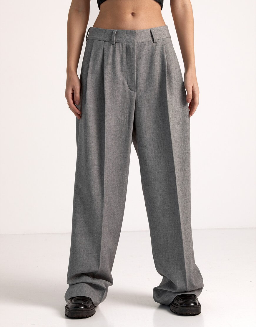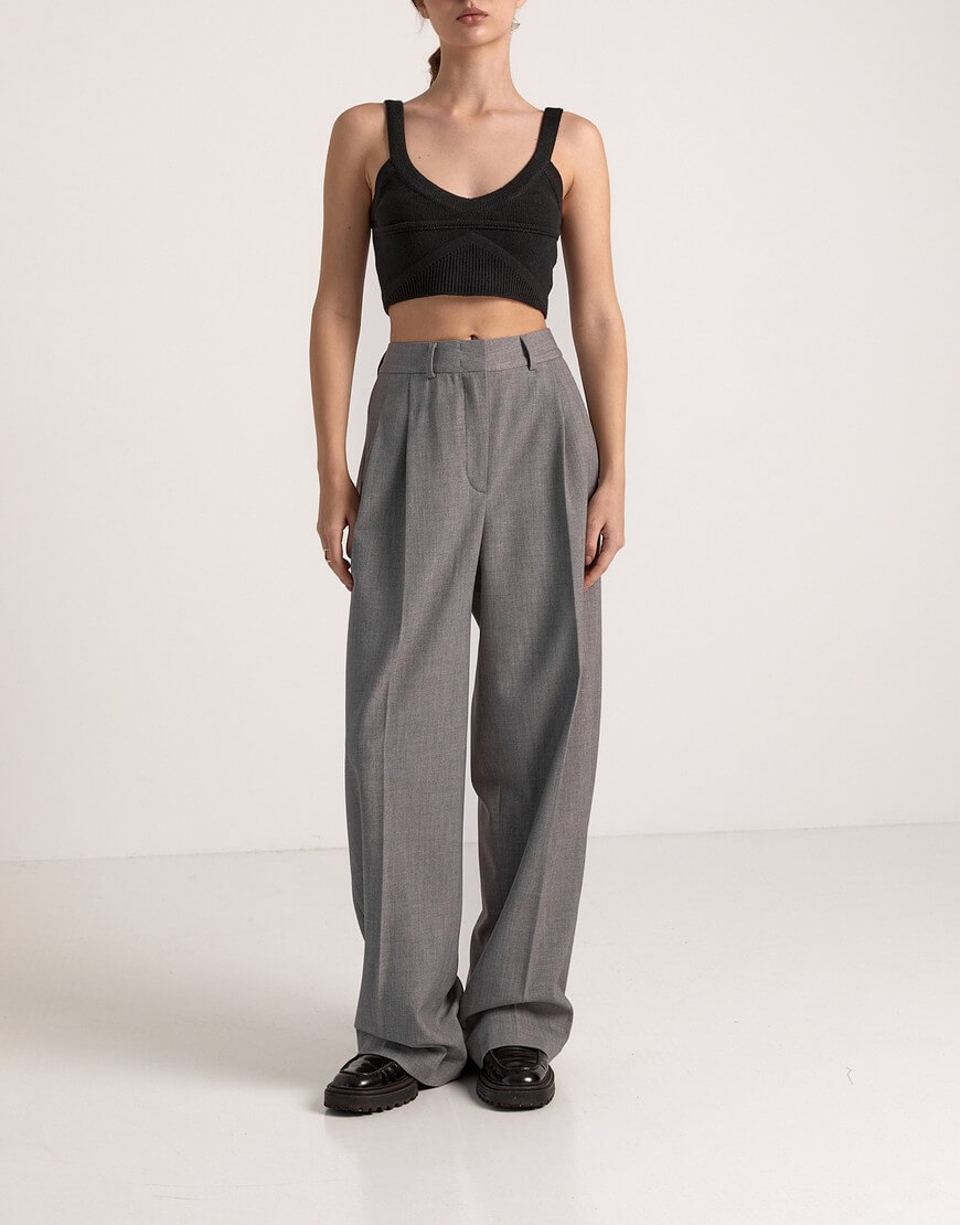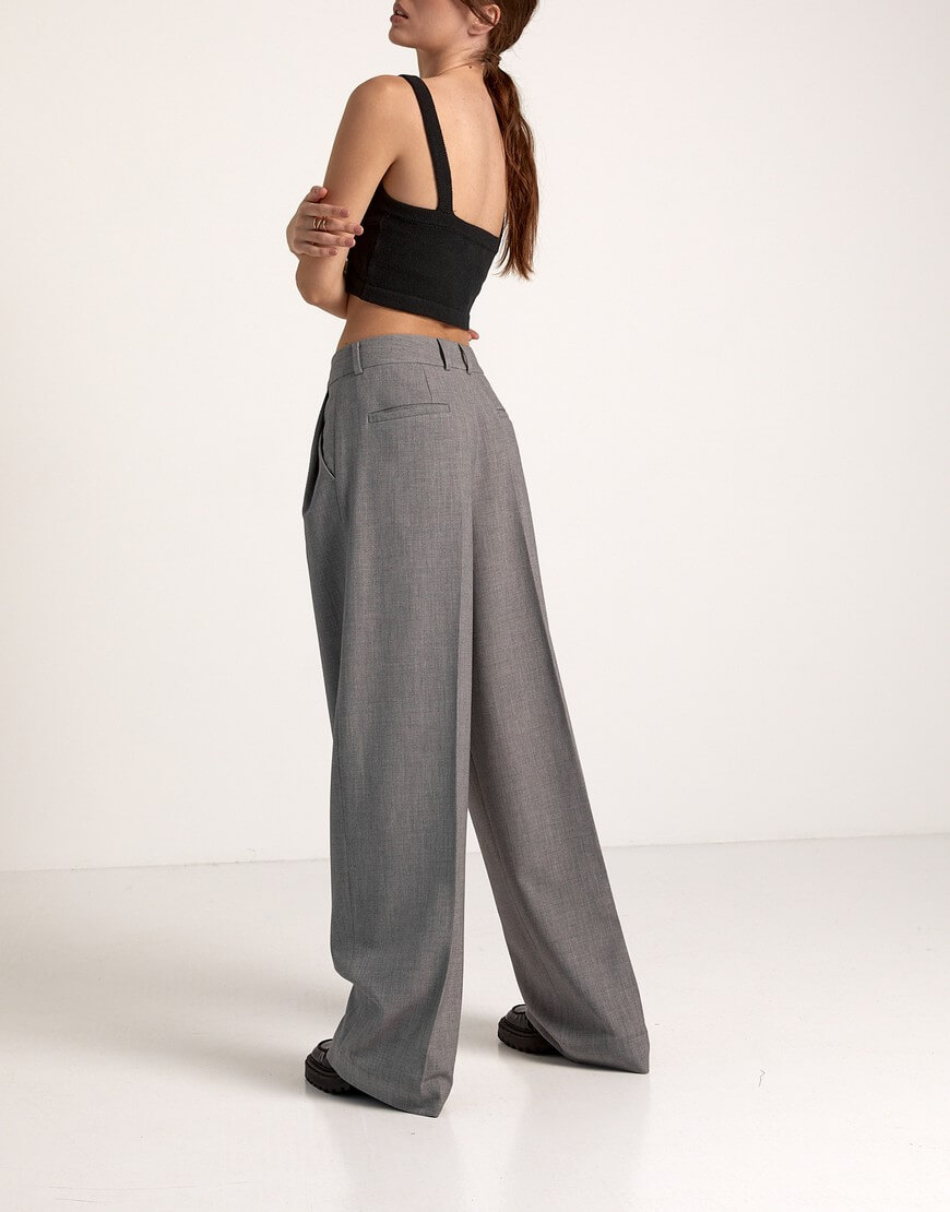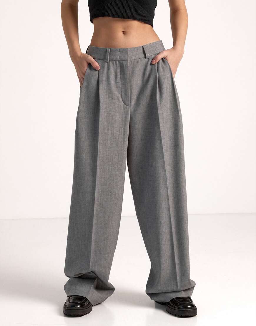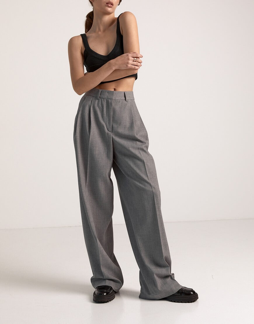 Доставка впродовж 3-10 робочих днівШтани палаццо (широкі) середньої посадки з декоративним складками і стрілками спереду. Дизайн штанів доповнюють бокові та задні кишені. Застібка на блискавці та металеві гачки всередині.