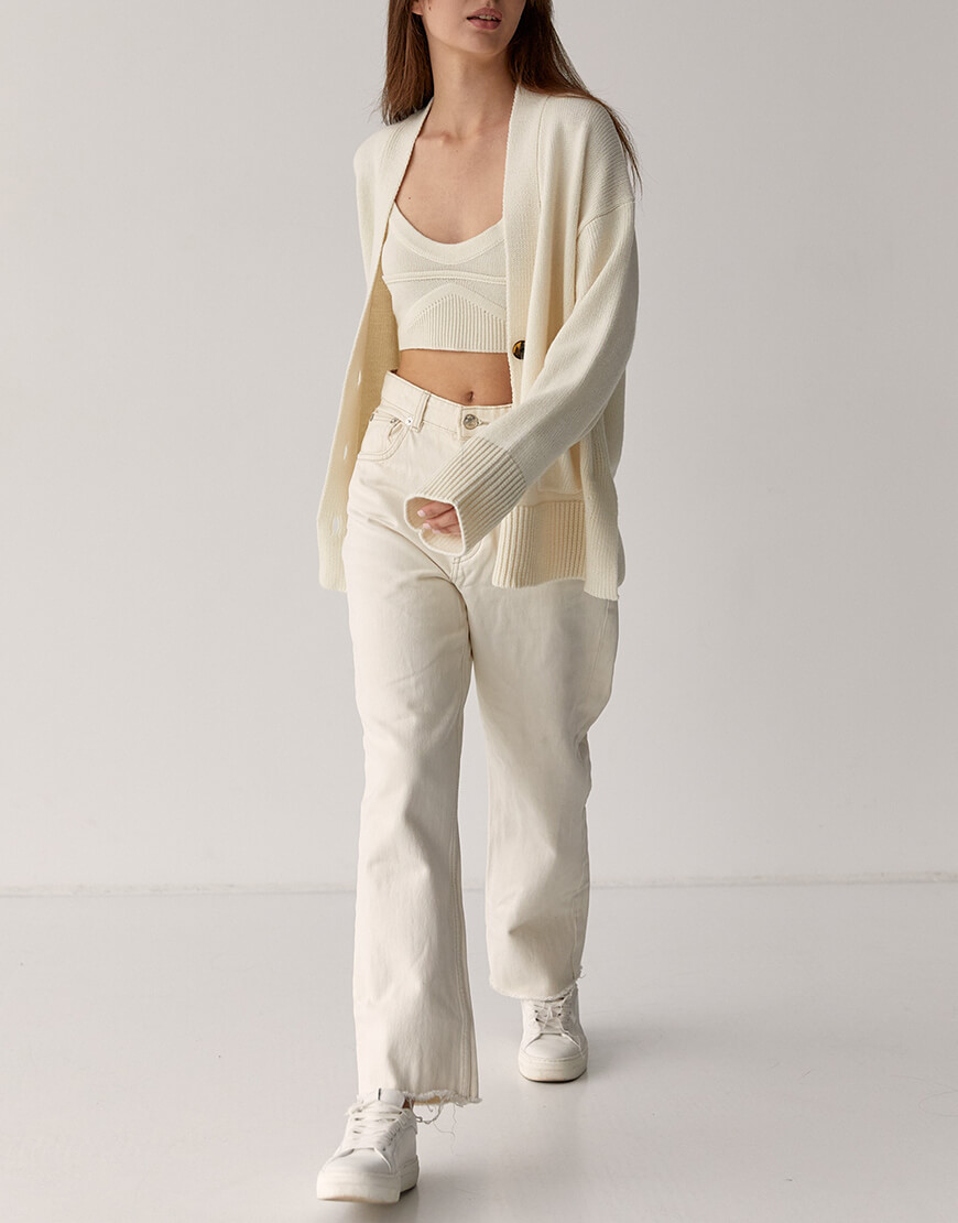 Доставка в течение 3-10 рабочих днейПриталений топ на широких бретелях, виконаний з преміальної італійської вовни мериноса. Топ оздоблений декоративним швом по лінії грудей. Ідеально доповнює кардиган з колекції FIORE BIANCO.