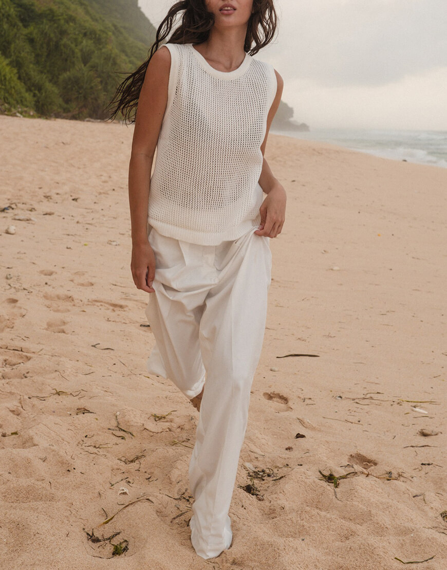 Доставка впродовж 3-10 робочих днівШтани прямого крою з бавовняної тканини середньої посадки з декоративною складкою і стрілками спереду. Дизайн штанів доповнюють бокові та задні кишені. Застібка на металеві гачки всередині.