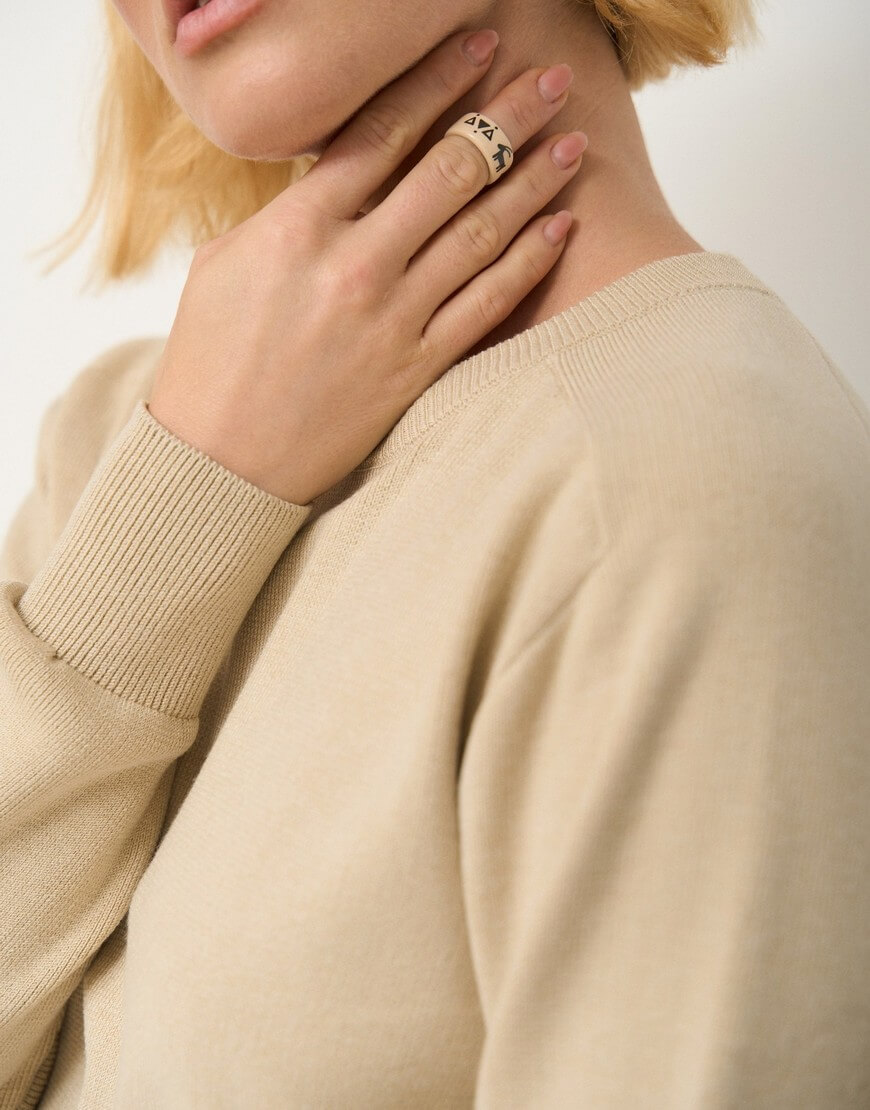 Доставка впродовж 3-10 робочих днівВкорочений джемпер з приспущенною лінією плеча, круглим вирізом і окантовкою в рубчик по краях.