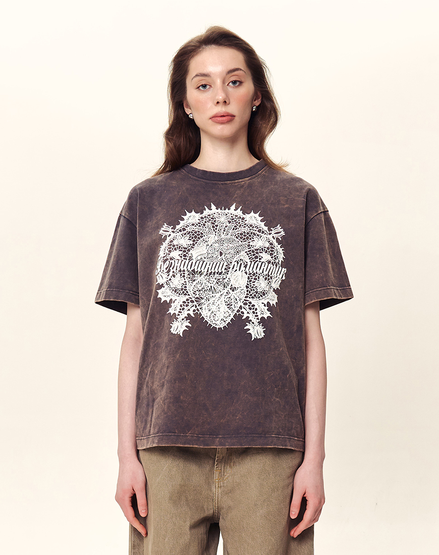 Доставка протягом 2-5 робочих днівОверсайз футболка з вивареним ефектом та об’ємним принтом у вигляді стилізованого анатомічного серця з написом.