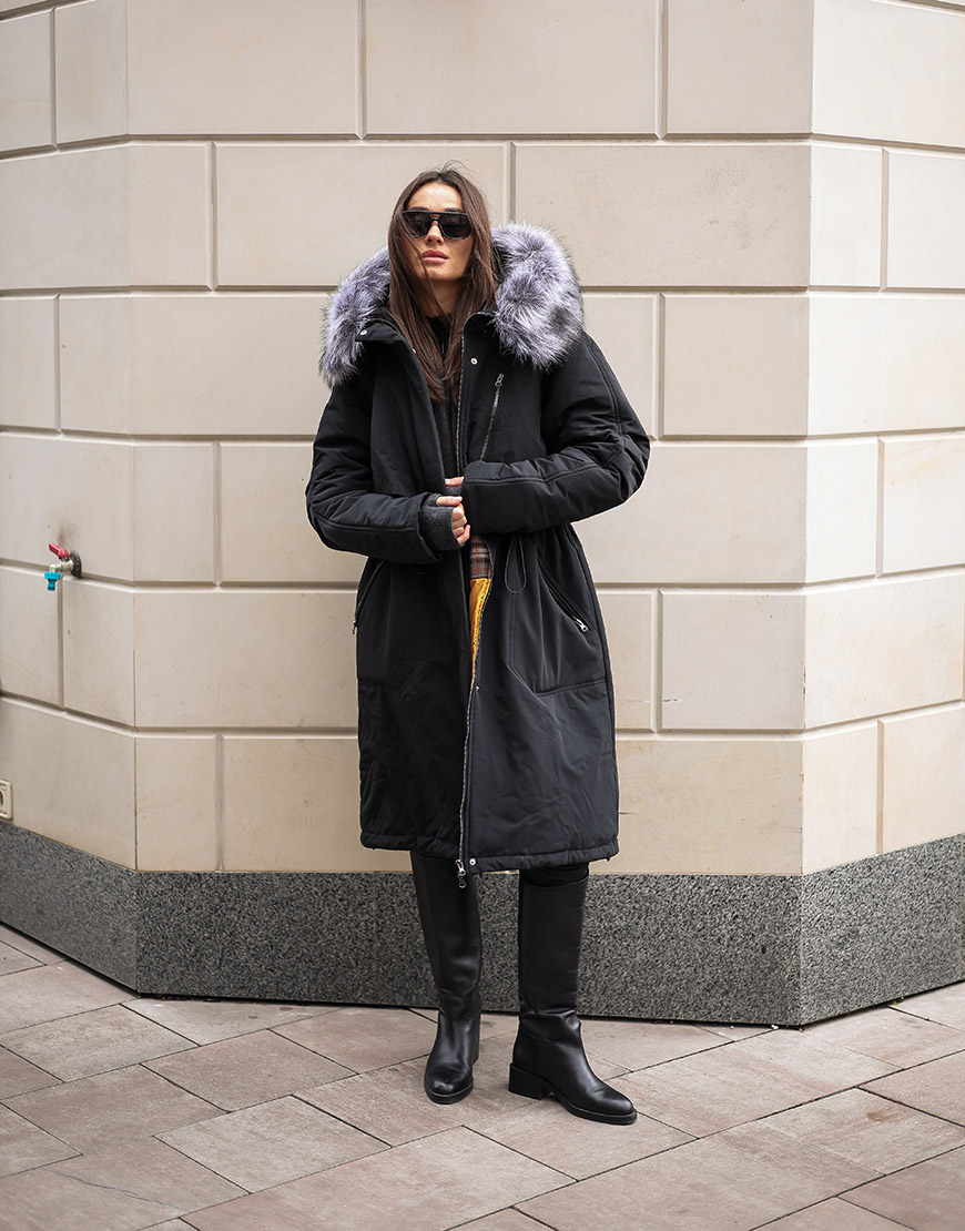 Зимовий тренч чорний