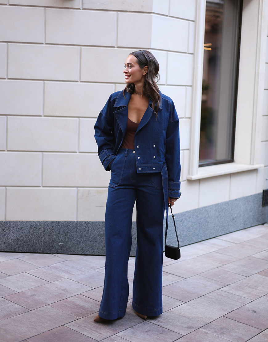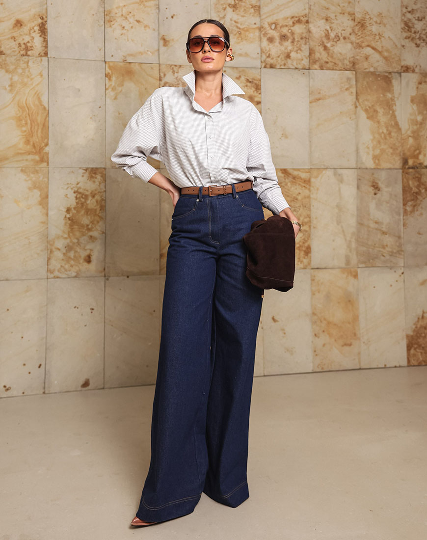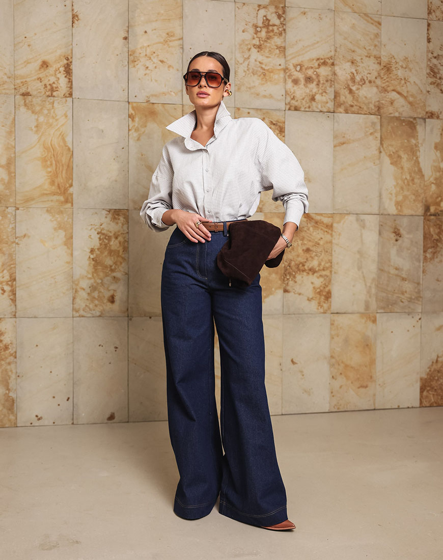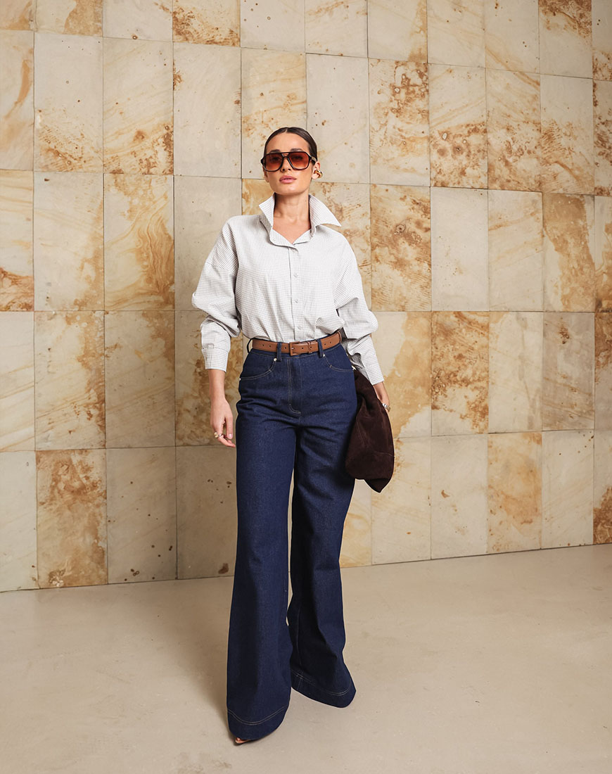 Доставка впродовж 2-5 робочих днівДжинси із щільного деніму середньої посадки розклешені від стегна, з акцентною строчкою.