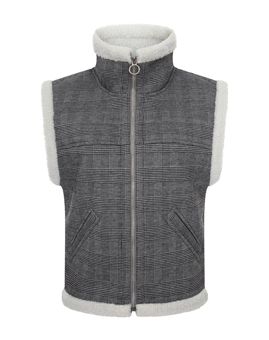 Доставка впродовж 2-5 робочих днівЖилет у клітинку із застібкою-блискавкою, на хутрі.