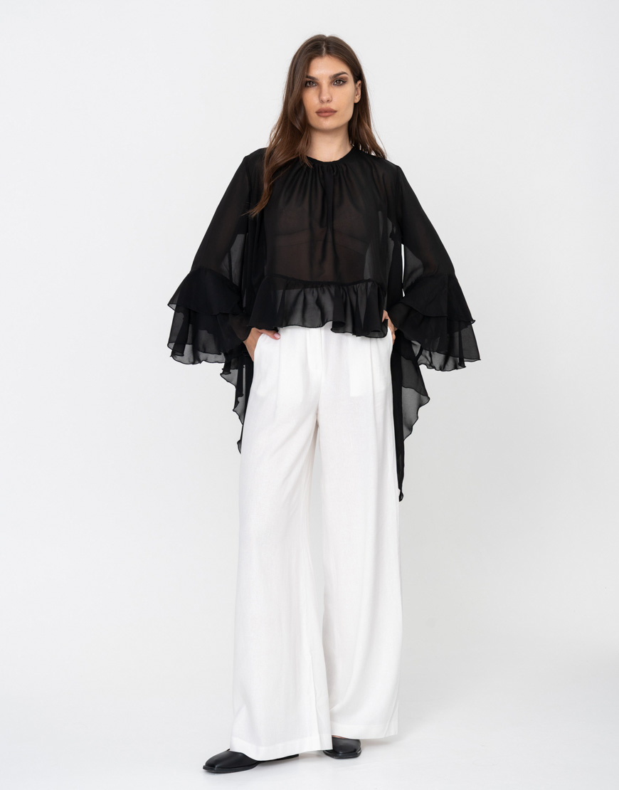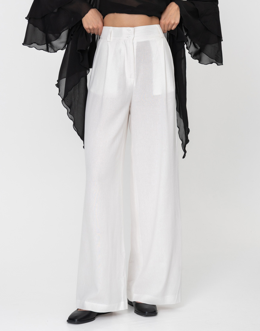 Брюки-палаццо із льону білі
