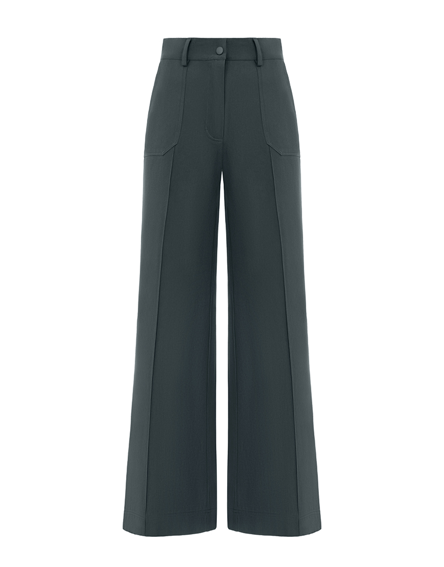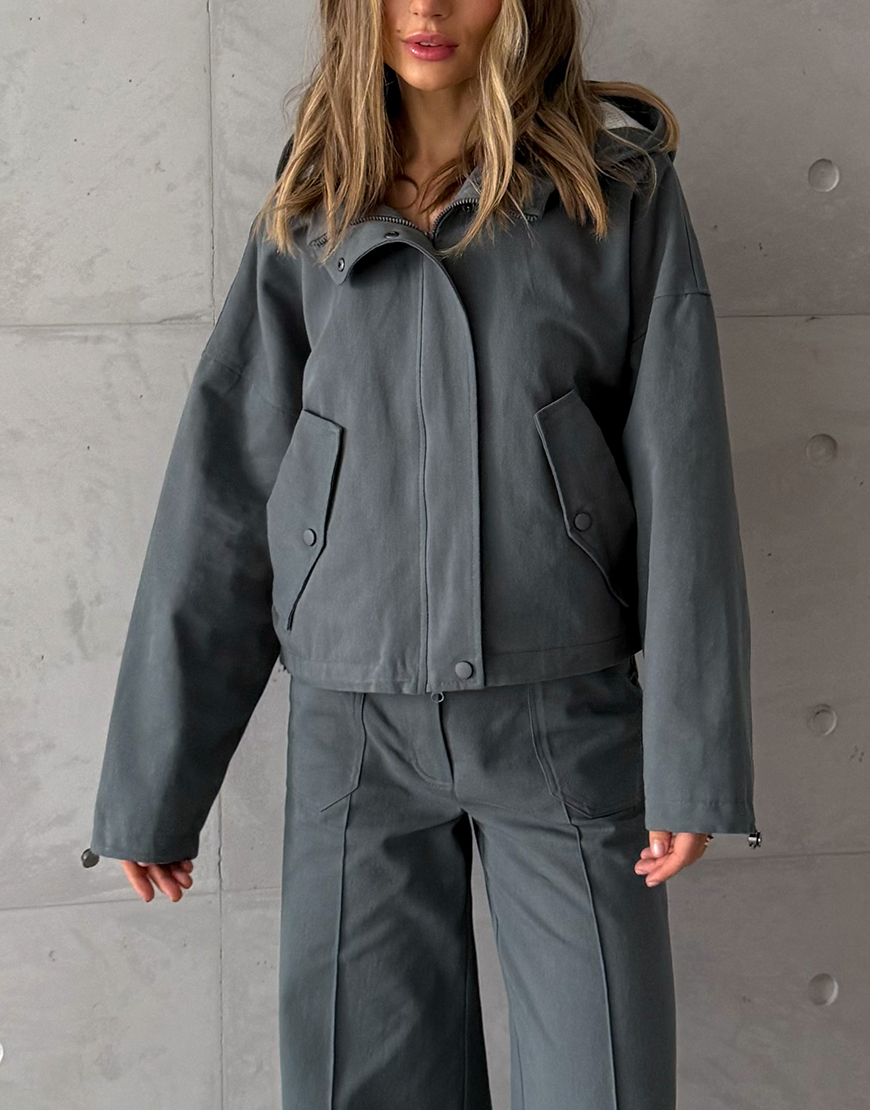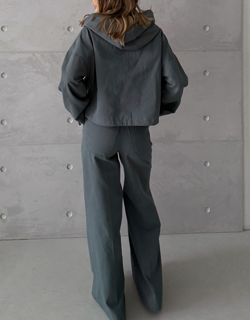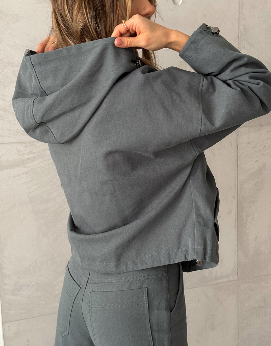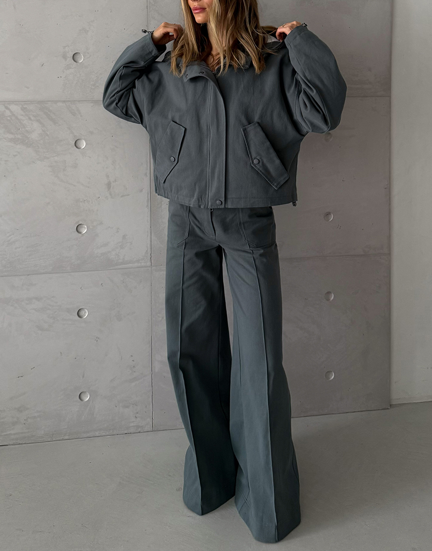 Костюм із ветрівкою та джинсами-кльош із твілу сіро-зелений