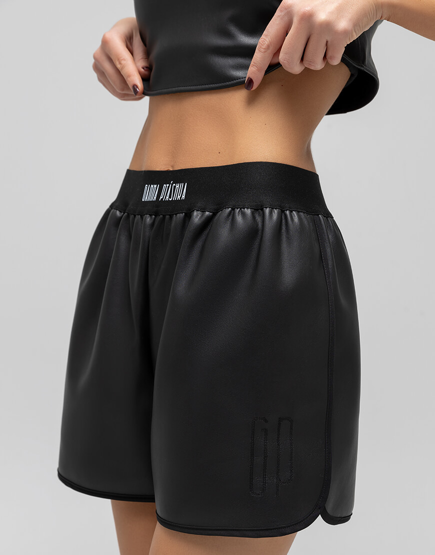 Доставка впродовж 2-5 робочих днівШорти вільного крою, на резинці, з декоротивною вишивкою лого бренду, закругленими деталями та окантовкою