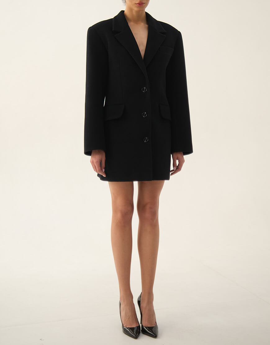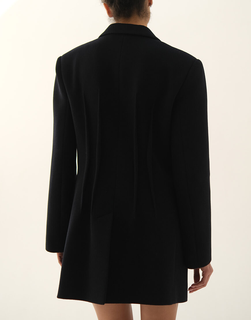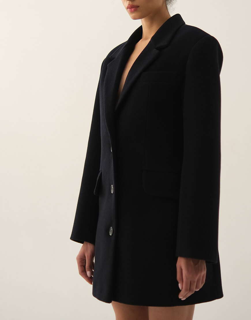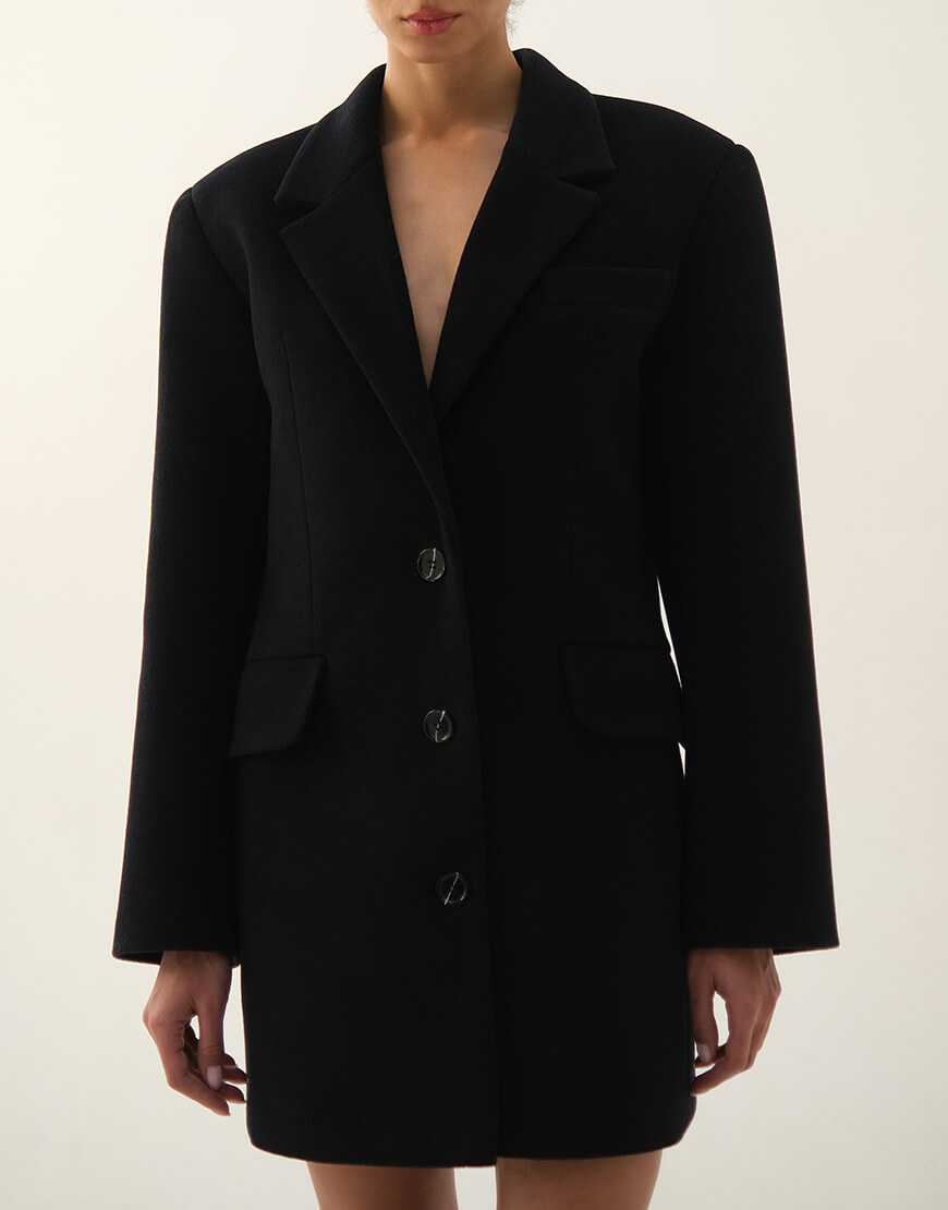 Доставка впродовж 2-5 робочих днівПальто середньої довжини з об*ємними плечима та декоротивними гудзиками, оригінальними витачками по спинці