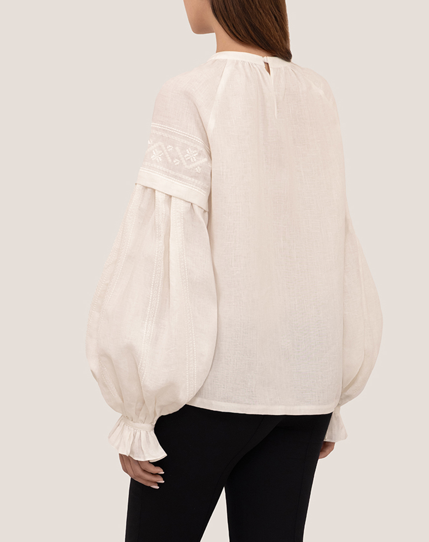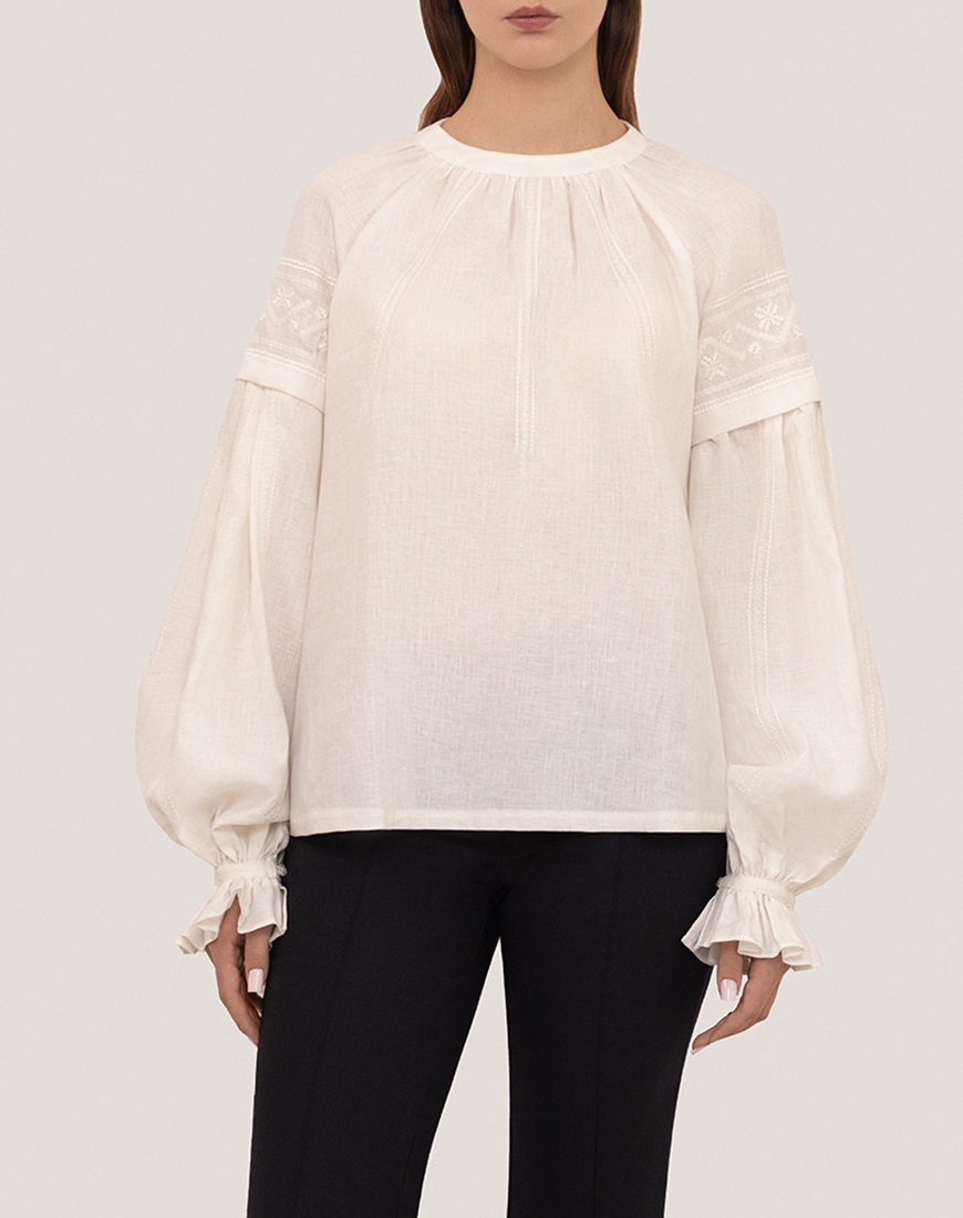 Доставка протягом 2-5 робочих днівЛляна блуза вільного крою з вишивкою