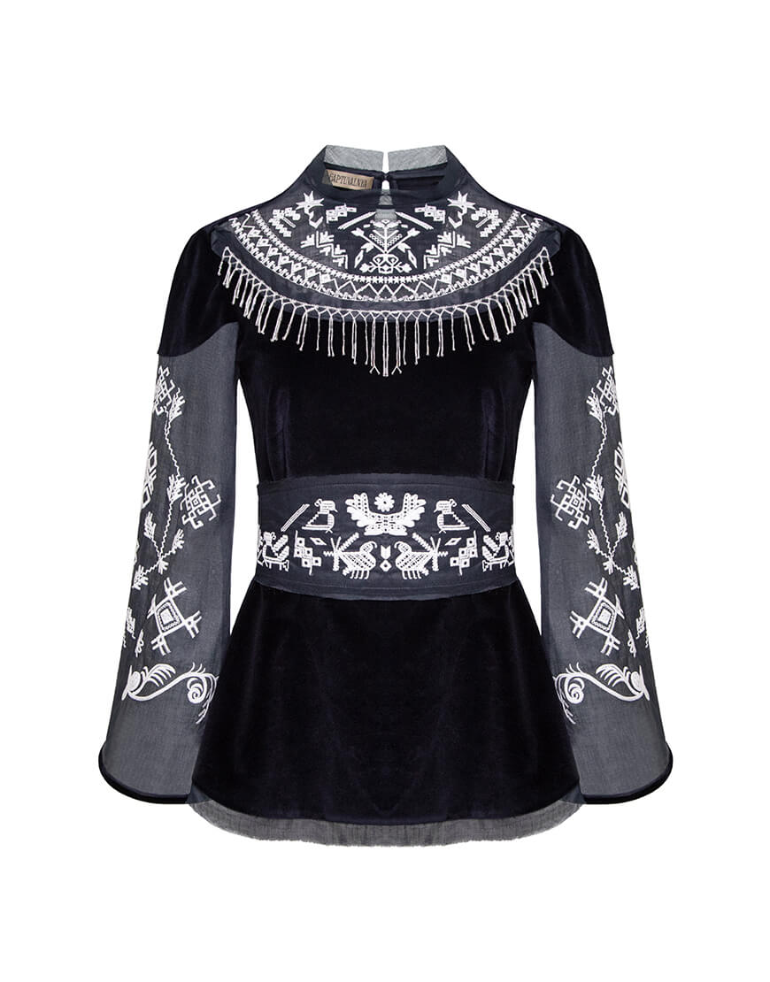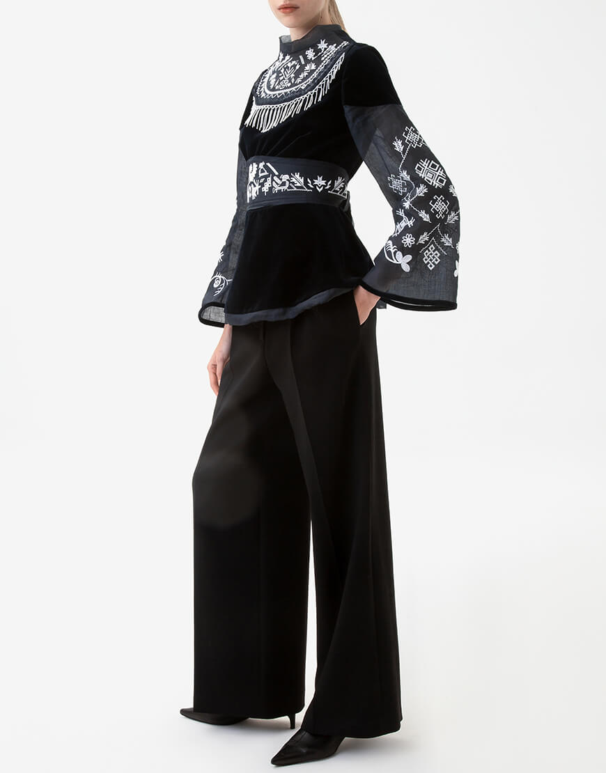 Вишиванка Єдності на темно-синьому оксамиті з поясом