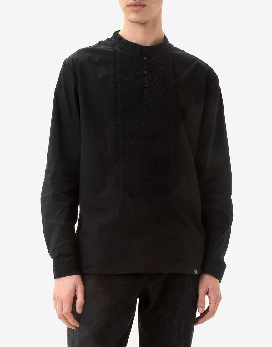 Чоловіча сорочка з дизайнерською вишивкою Опришок, чорний орнамент