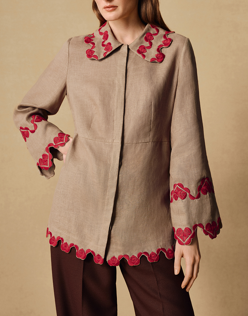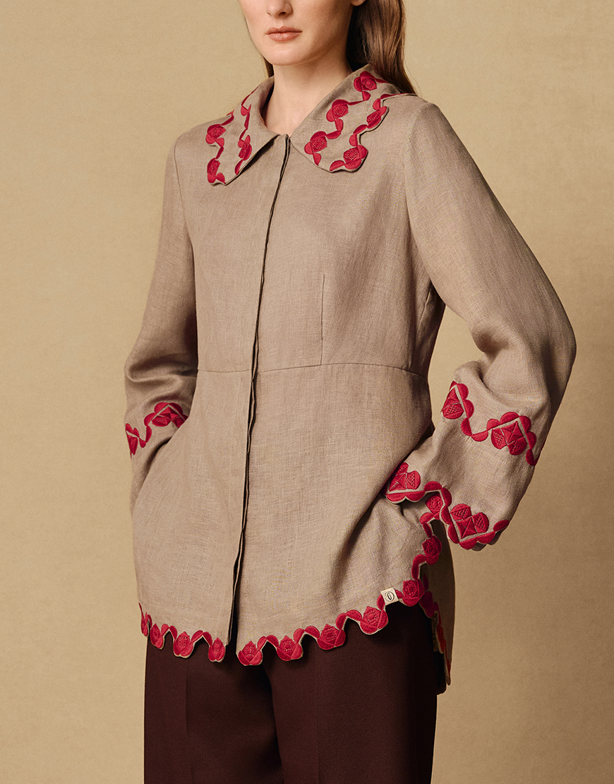 Доставка протягом 2-5 робочих днівЛляна сорочка з серцеподібними орнаментами хвилястими рядами на комірці, рукавах та подолі натхненні мотивами косівської кераміки.