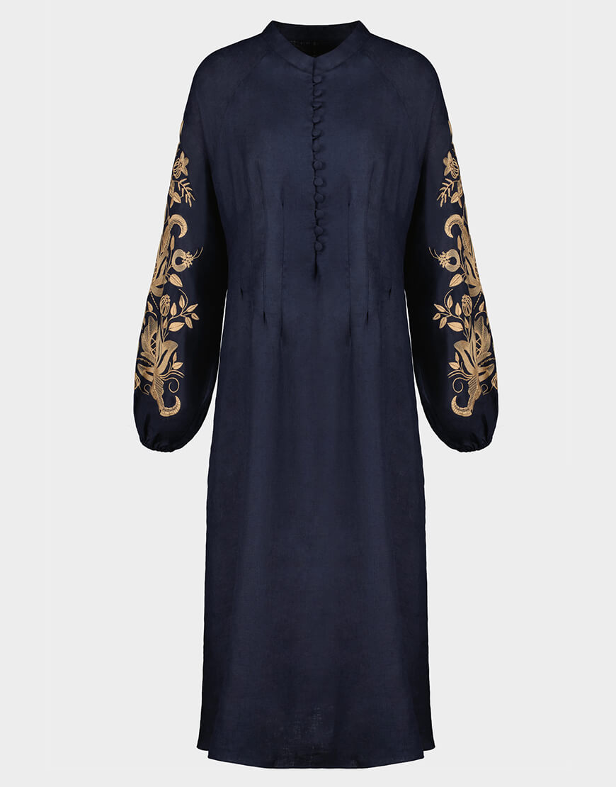 Сукня темно-синя за мотивами традиційної сорочки з дизайнерською вишивкою