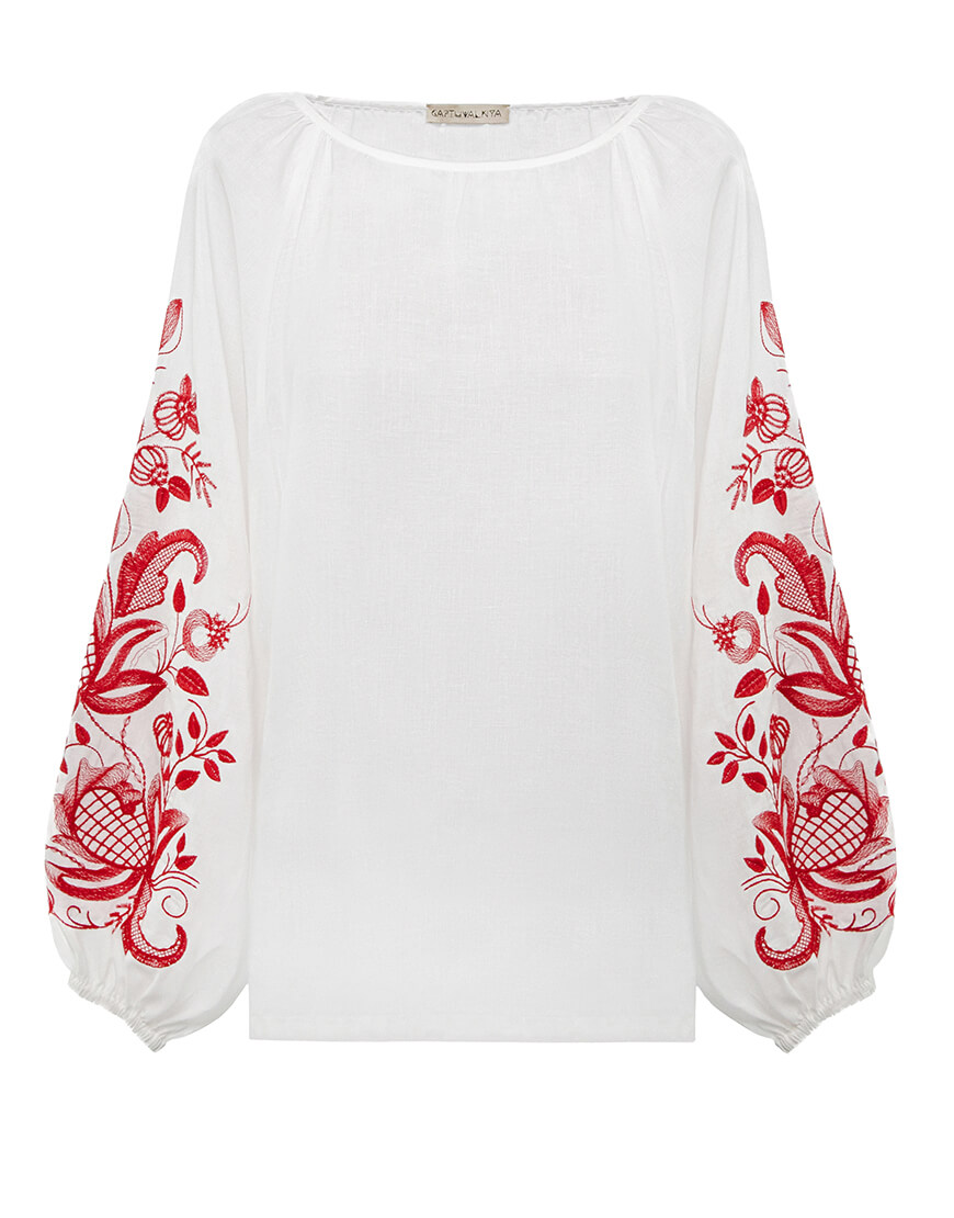 Блузка за мотивами традиційної сорочки з дизайнерською вишивкою