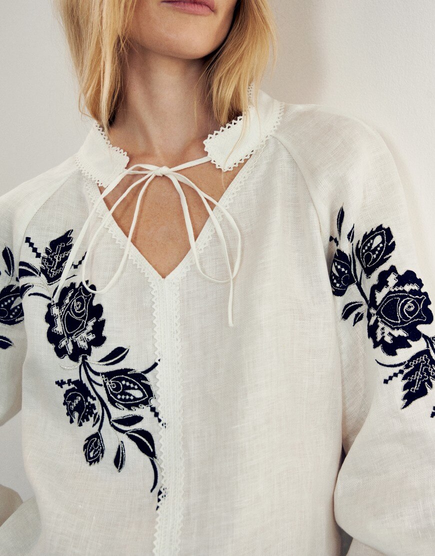 Доставка впродовж 2-5 робочих днівМодель вільного силуету. Рукав реглан. Цікавим елементом є комірець-стійка та довгі завʼязки, що дозволяють стилізувати іншими аксесуарами.