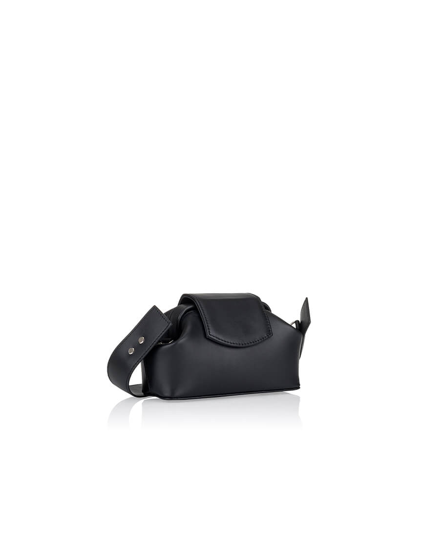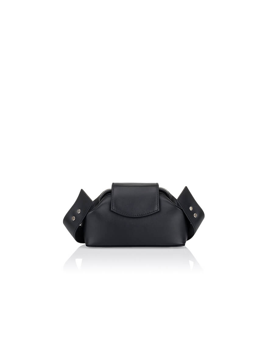 Ця модель виконана з італійської шкіри чорного кольору. Усередині яскраво-червона текстильна підкладка, одна кишеня на блискавці та одна без блискавок.