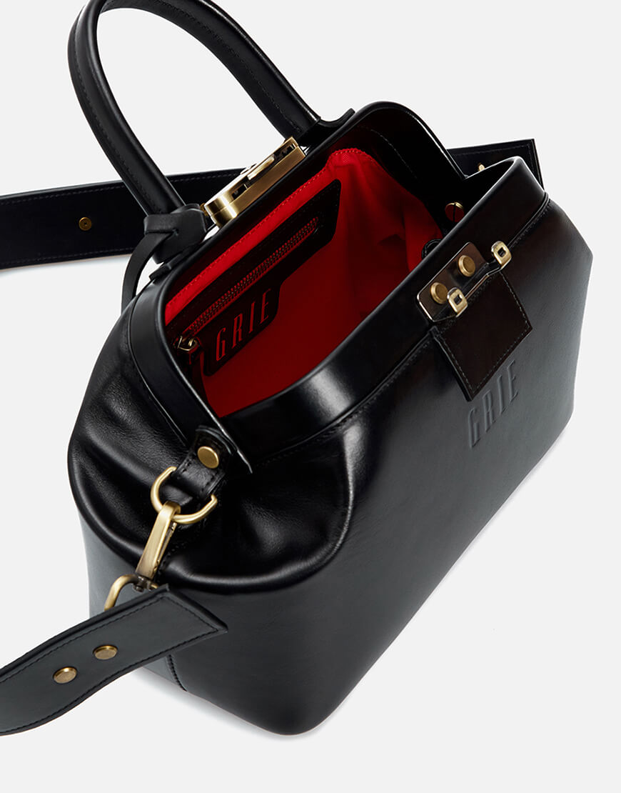 Шкіряна сумка-саквояж середнього розміру GRIE Noble. Завдяки своєму оптимальному розміру GRIE Noble стала бестселером. Ця модель виготовлена з італійської шкіри. Всередині яскраво-червона текстильна підкладка, одна кишеня на блискавці та одна без блискавок. Чотири металеві ніжки на дні сумки захищають її від пошкоджень. Практичною особливістю саквояжів GRIE є їхня місткість. За рахунок структури рамкового замку, який приховує об’єм зовні, але залишає його всередині, у саквояжі міститься несподівано багато речей. Гарантія 12 місяців. Довічне обслуговування.