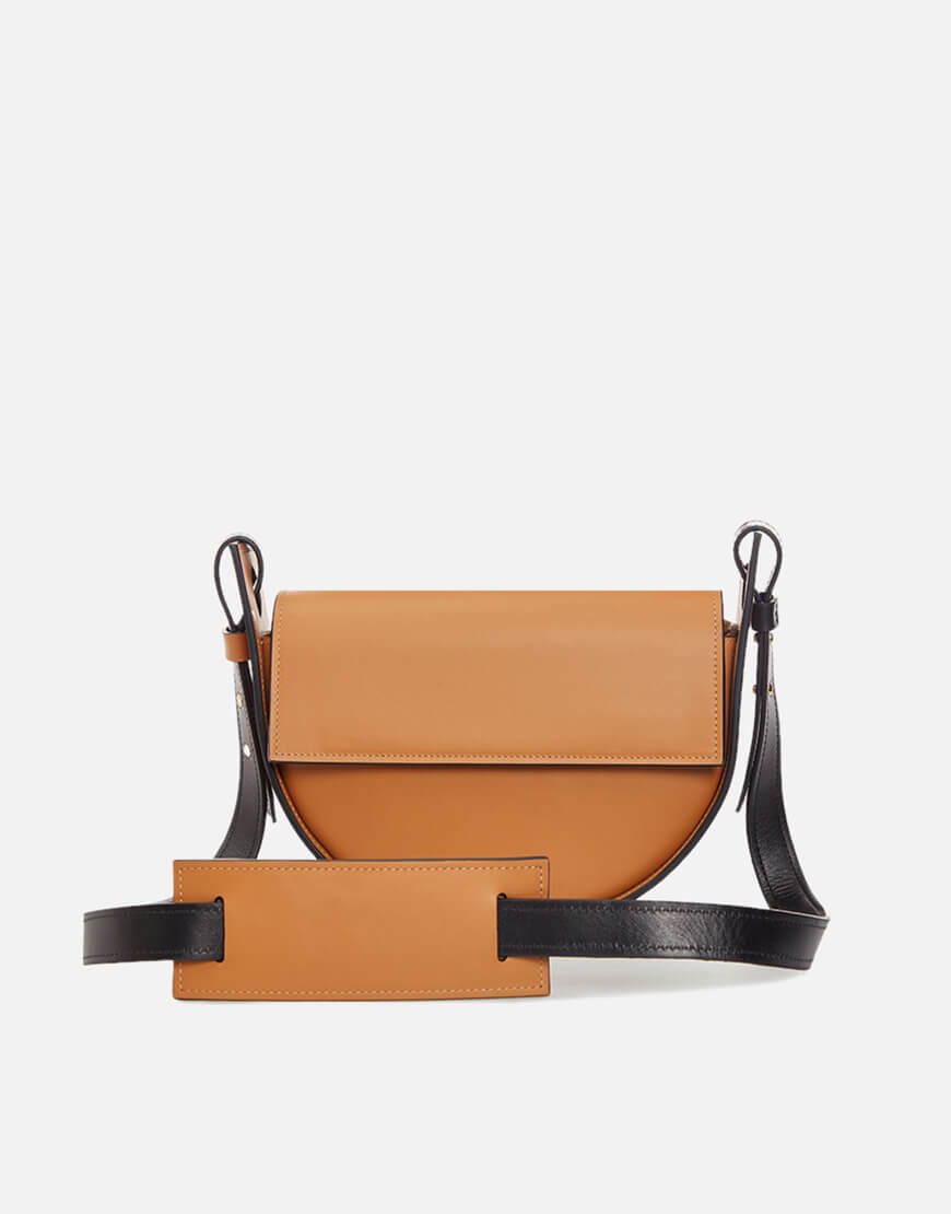 Доставка впродовж 1-3 тижнівПрактична сумка Grie Arc з колекції Cityscape, присвяченої містам, в яких ми живемо. Ця модель має напівкруглу форму, лаконічний дизайн і готова супроводжувати вас у ваших щоденних подорожах містом. Сумка виготовлена з комбінації карамельної та чорної шкір, всередині – червоний підклад. Сумка має одне відділення всередині з невеликою кишенею на передній стінці й більшою кишенею зовні на задній стінці. Клапан сумки застібається на дві магнітні кнопки.