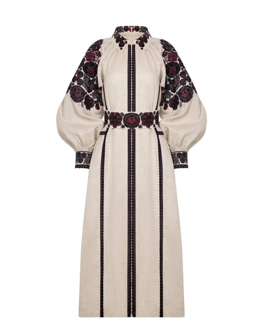 11 500 грнЛляна сукня, оздоблена квітковими мотивами вишивки, натхненними взорами явоірвського регіону Львівщини.Спереду по всій довжині сукня зашпиляється на металеві приховані кнопочки