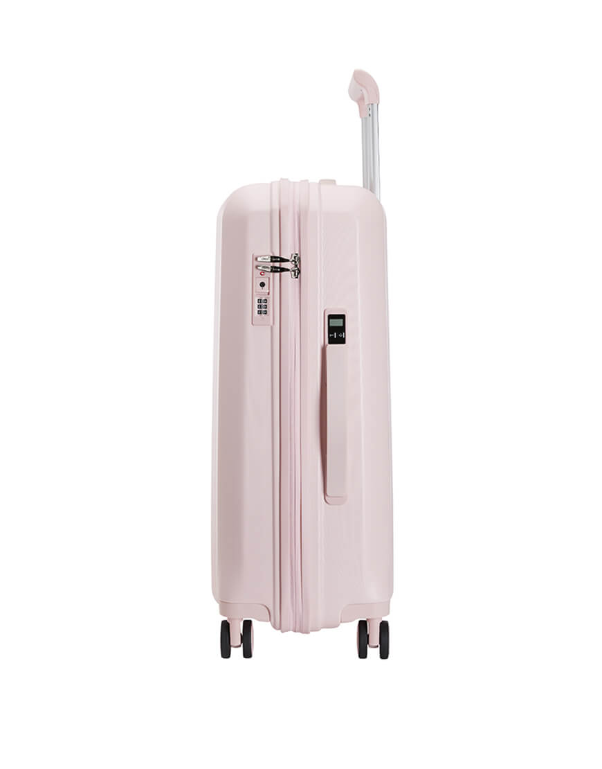 Доставка в течение 2-7 рабочих днейSmart-валіза із вбудованими вагами. Ви можете дізнатися вагу вашої валізи ще до прибуття в аеропорт і не переплачувати за зайву вагу. Ручки у верхній та бічній частинах валізи для комфортного транспортування як у вертикальному, так і горизонтальному положенні. Розмір M. Вага: 3,7 кг Об’єм: 65 л Розміри: 47,5 * 24,5 * 66 см Місткість: до 17 кг, 4 подвійні колеса, поворот 360’