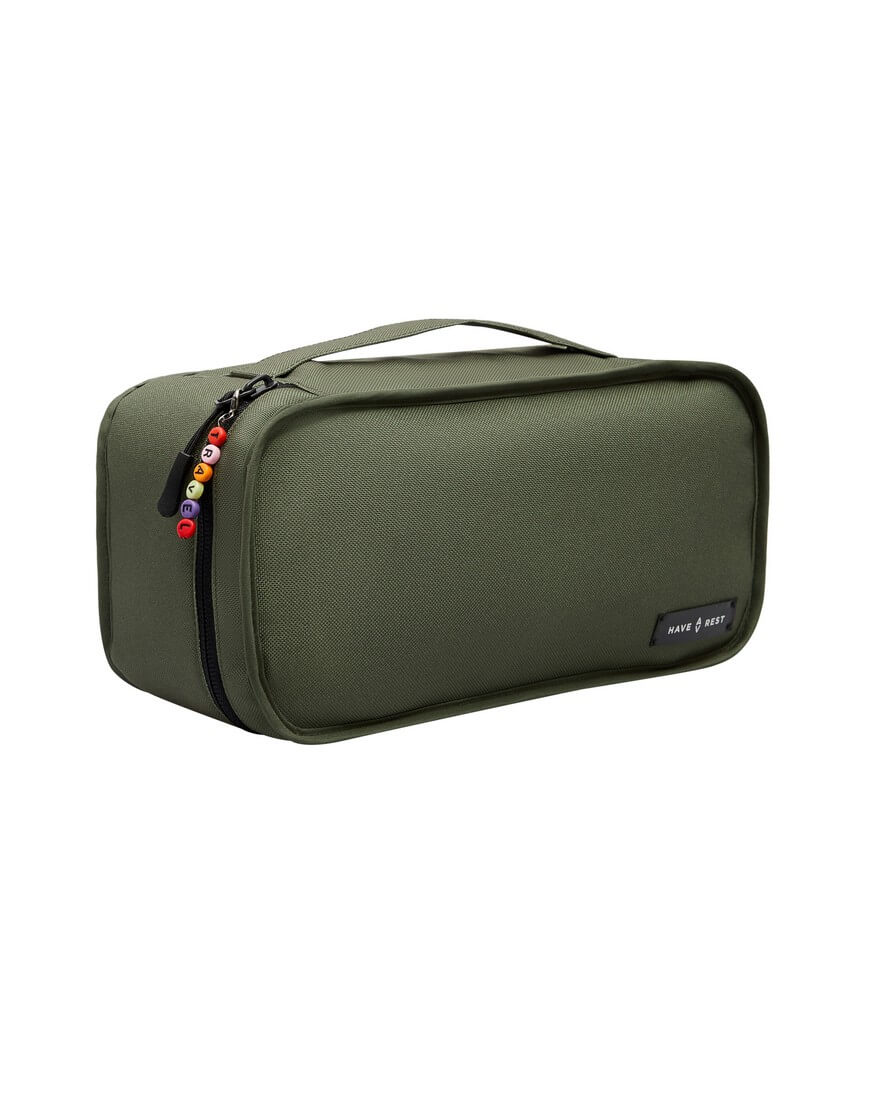 Модель має чотири кишені на резинці всередині, а також знімний пенал із застібкою-блискавкою.