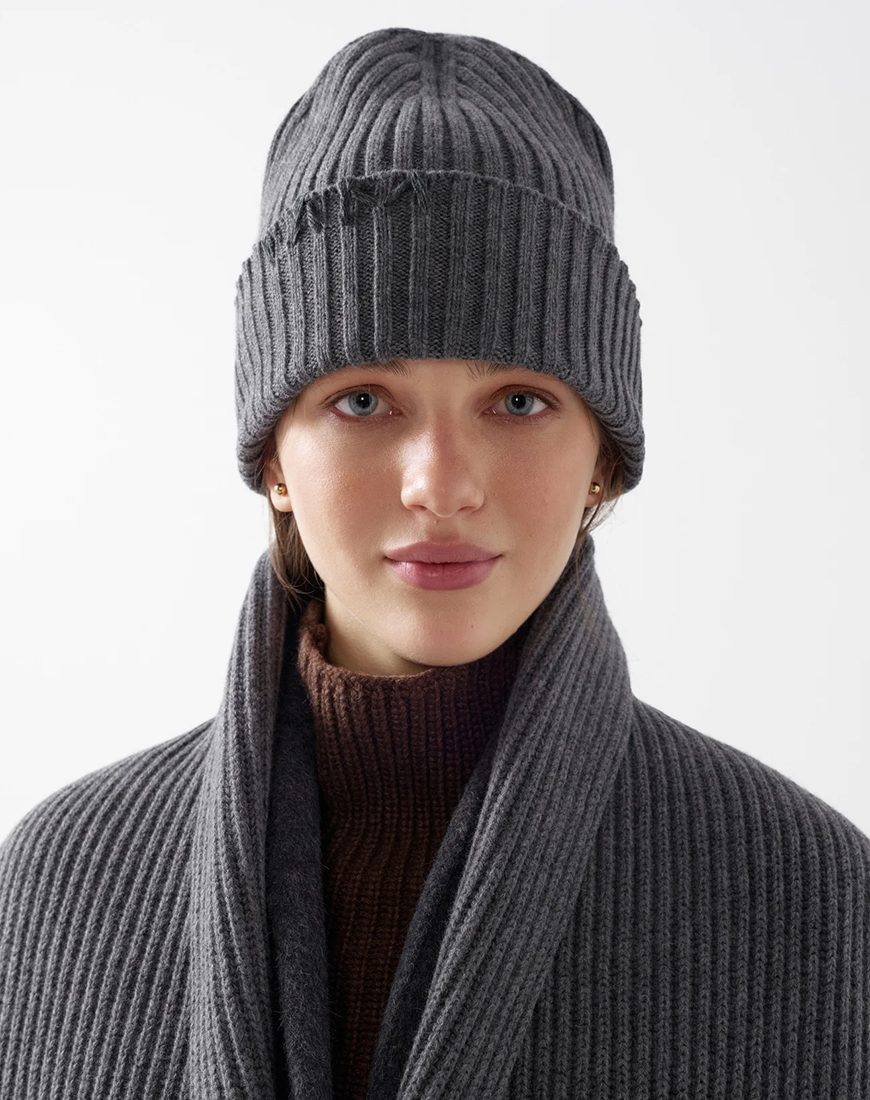 Доставка протягом 5-7 робочих днівВ’язаний сірий шарф з ніжної вовни та кашеміру. Оздоблений декоративним стібком ручної роботи. М’який, теплий та приємний до тіла, ідеально поєднується з сірою шапкою у тон.