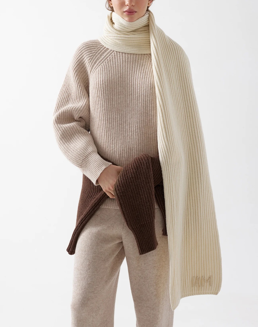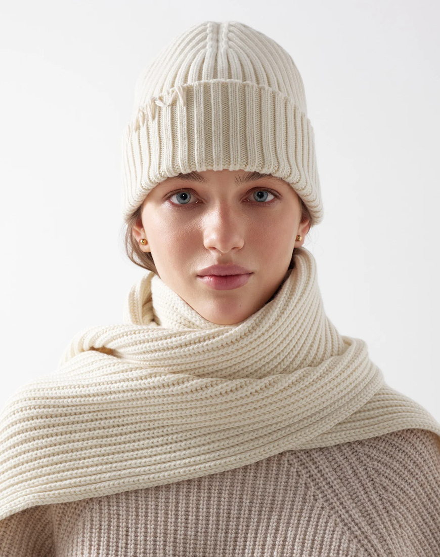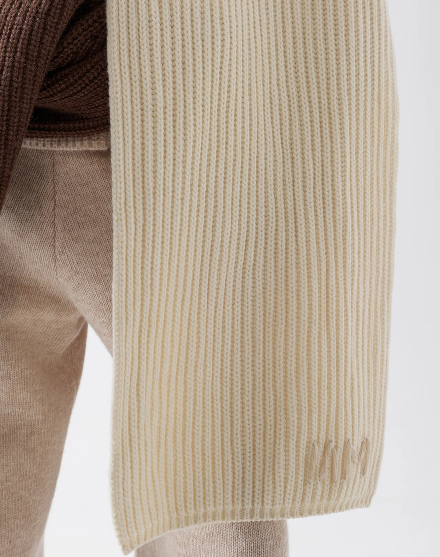 Доставка протягом 5-7 робочих днівВ’язаний молочний шарф з ніжної вовни та кашеміру. Оздоблений декоративним стібком ручної роботи. М’який, теплий та приємний до тіла, ідеально поєднується з молочною шапкою у тон.