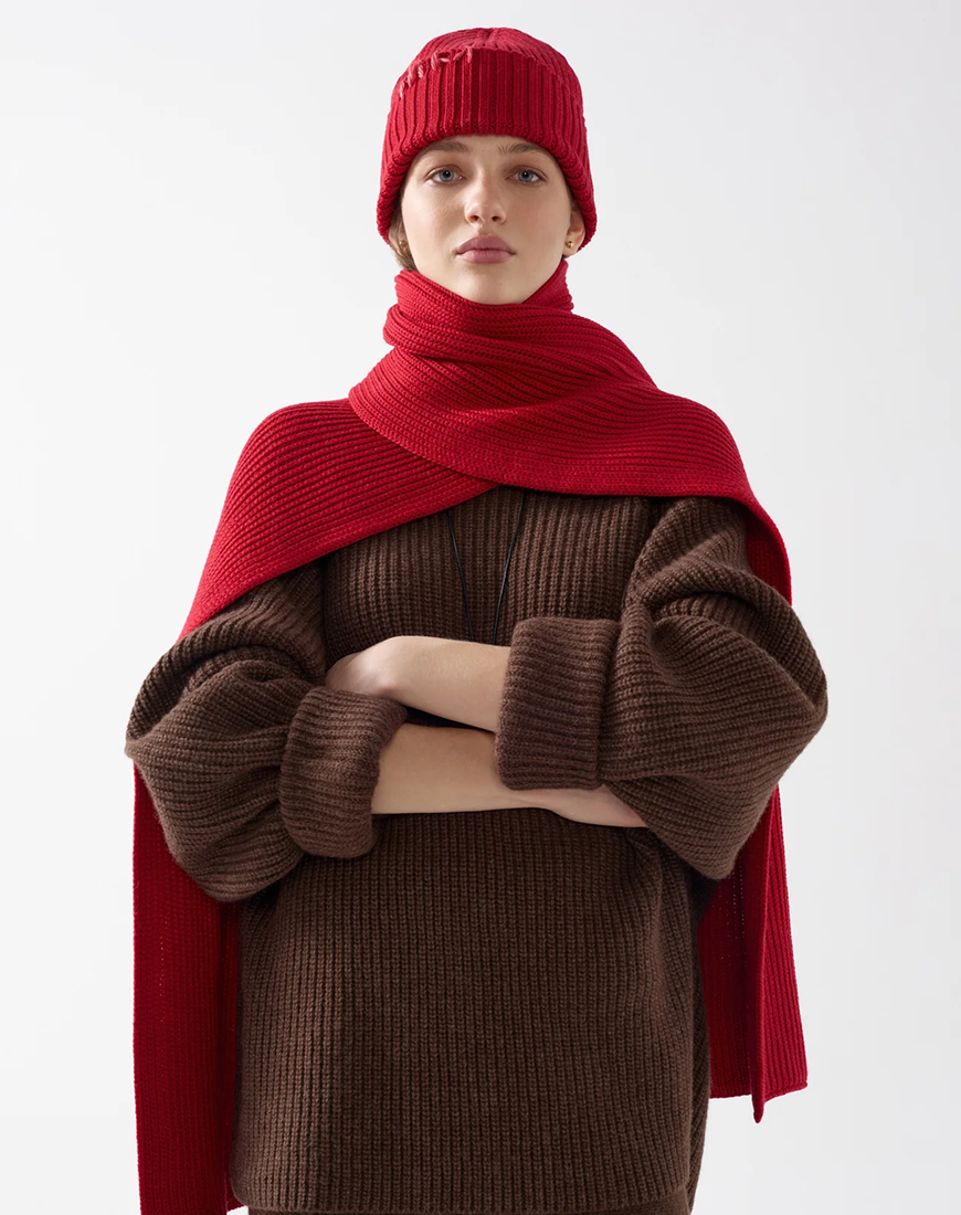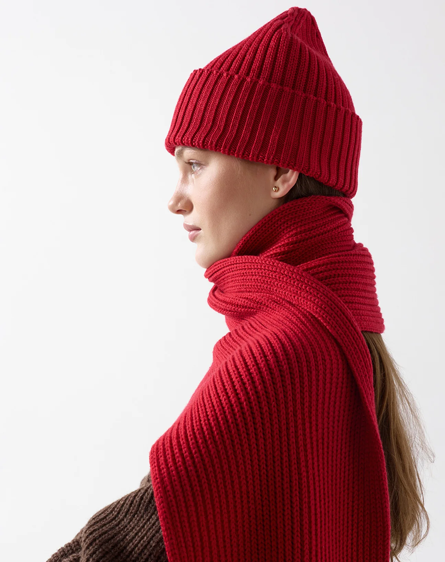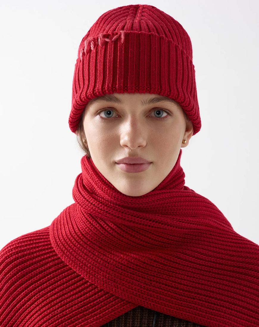 Доставка протягом 5-7 робочих днівВ’язана червона шапка з ніжної вовни та кашеміру. Оздоблена декоративним стібком ручної роботи. Еластична та приємна до тіла та чудово поєднується з червоним шарфом у тон.
