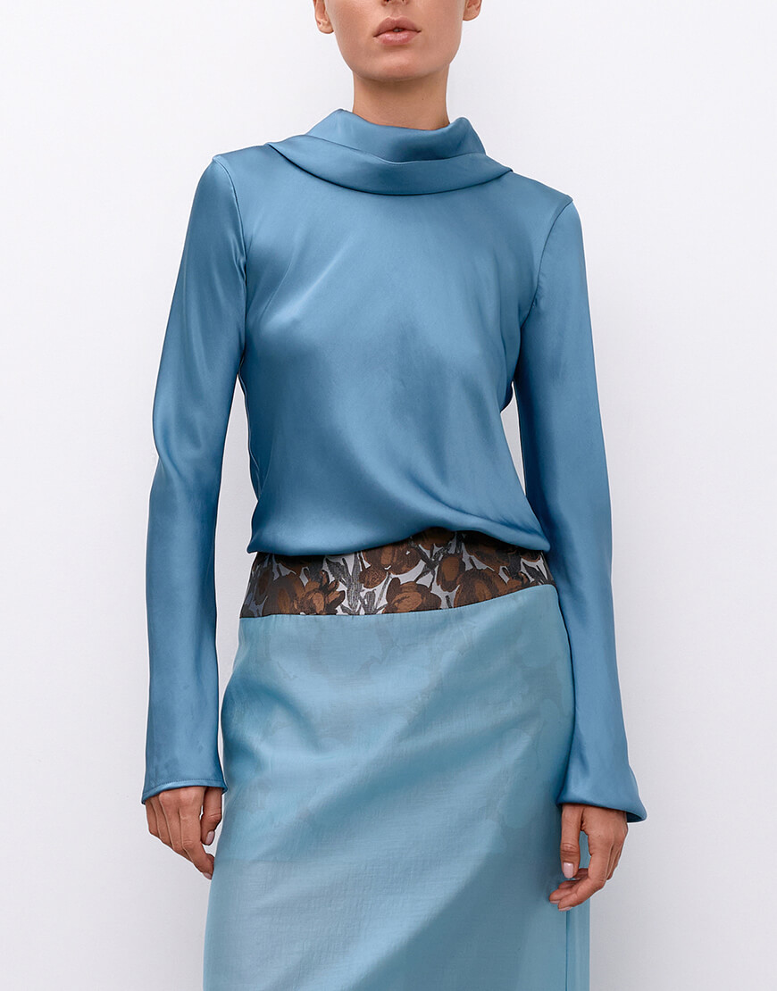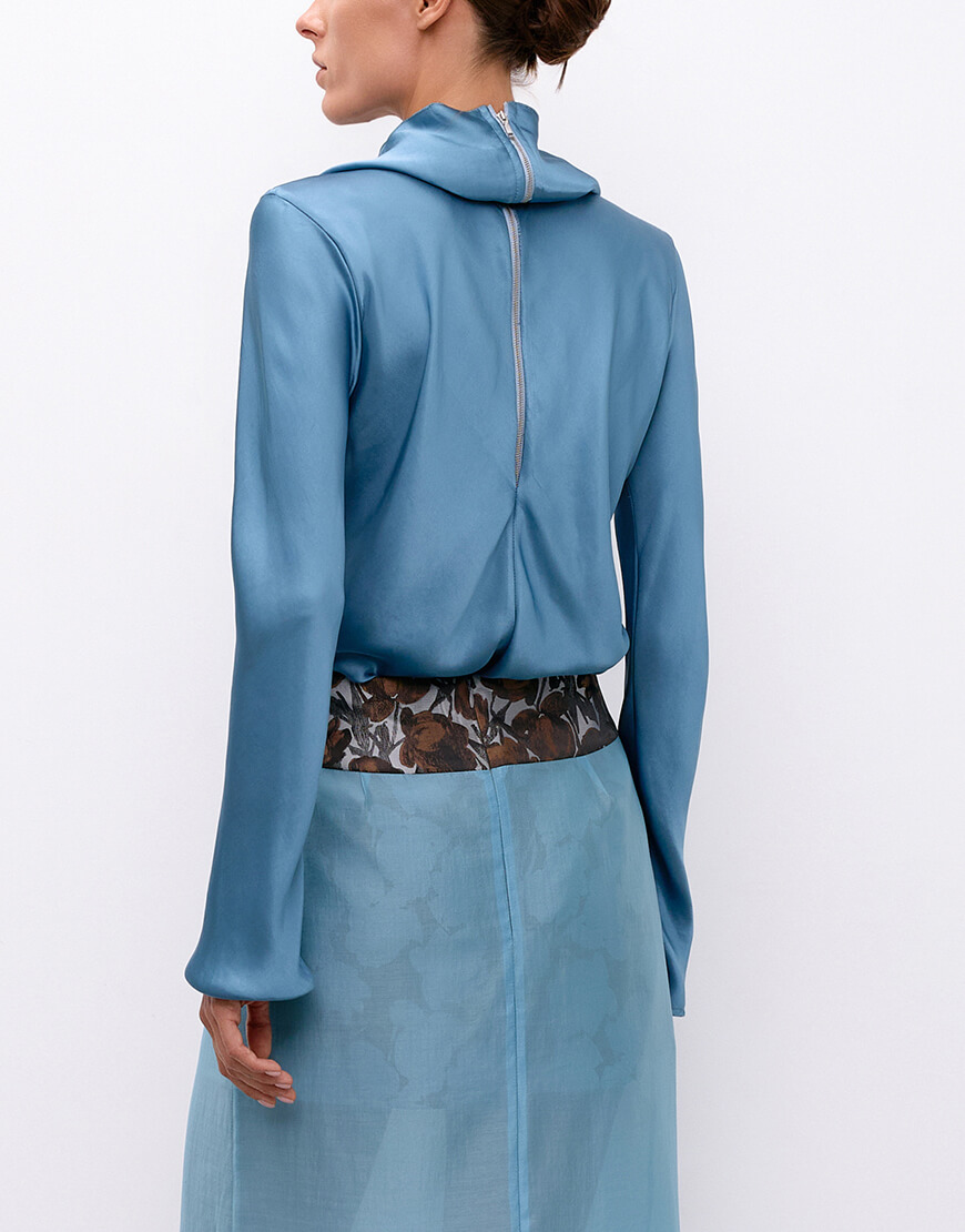 Доставка впродовж 5-7 робочих днівЛонгслів прямого силуету з розширеними до низу рукавами. Оздоблений акцентним коміром. Застібається ззаду на блискавку.
