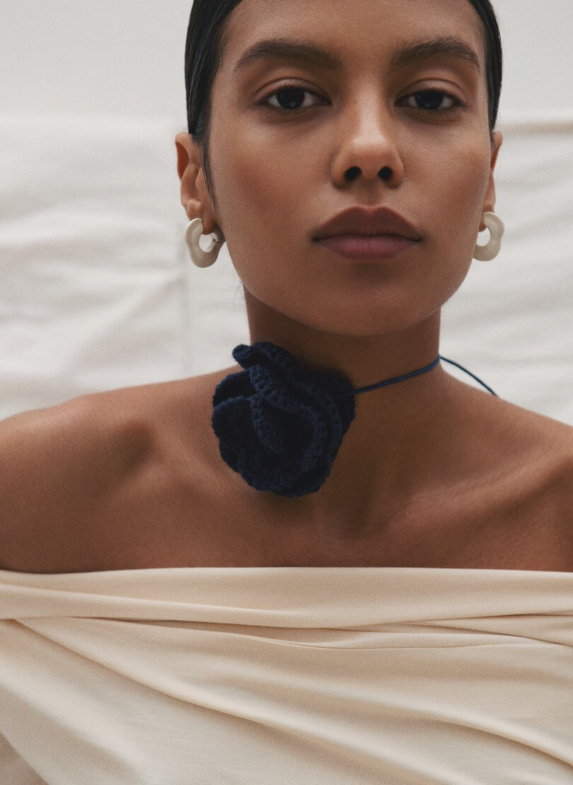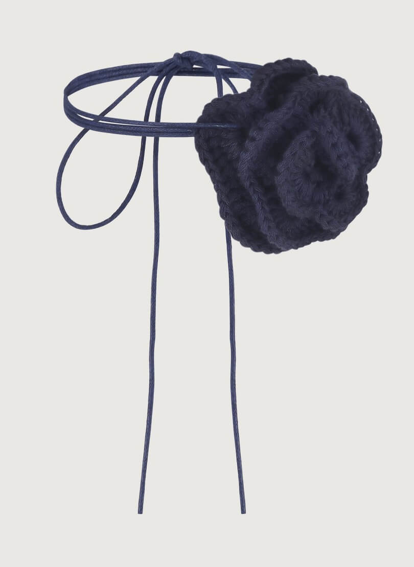 Доставка впродовж 5-7 робочих днівКвітка ручної в’язки, виготовлена з м’якого котону. Закріплена на вощеному шнурку.