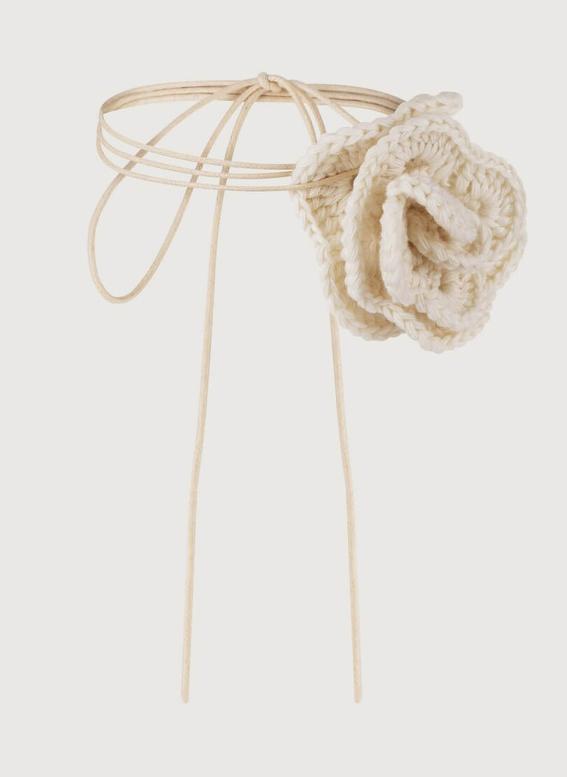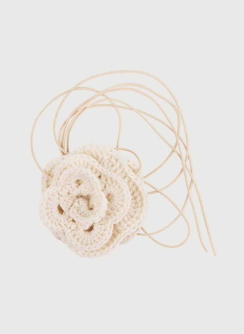 Доставка впродовж 5-7 робочих днівКвітка ручної в’язки, виготовлена з м’якого котону. Закріплена на вощеному шнурку.