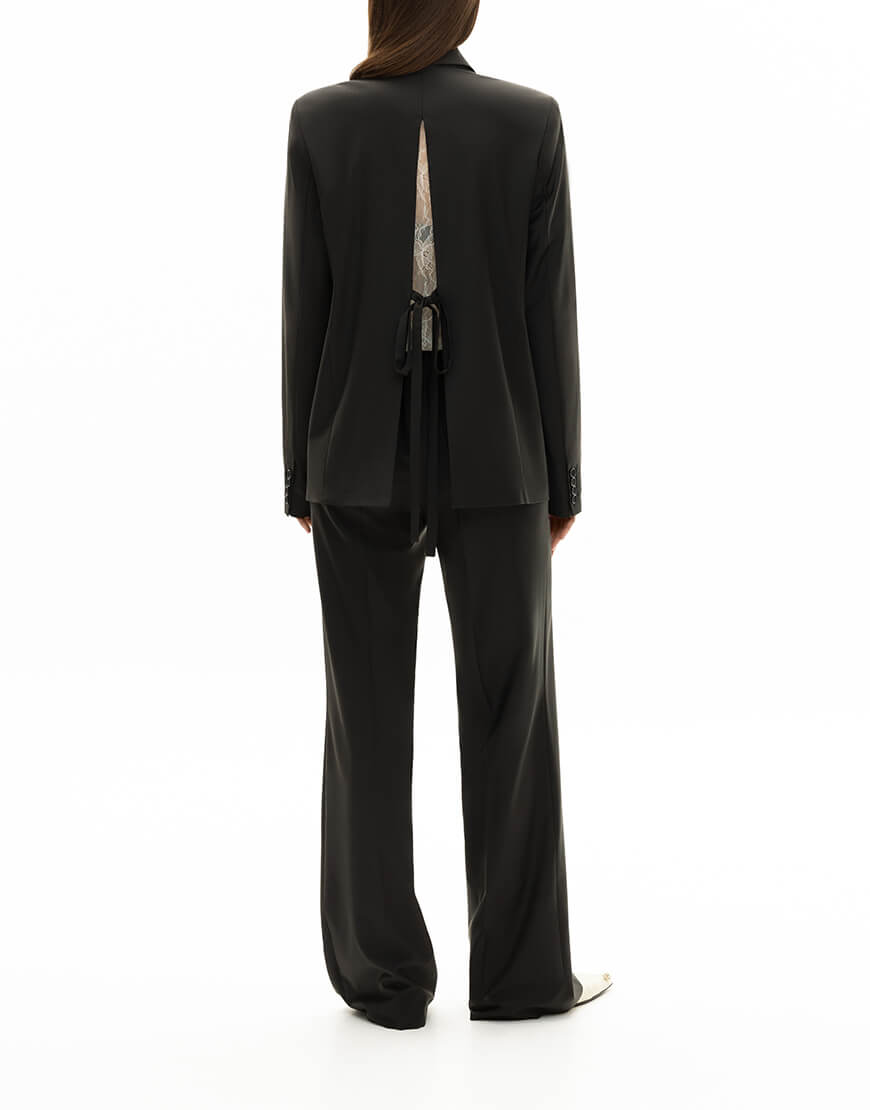 Доставка впродовж 5-7 робочих днівЖакет прямого крою з акцентною відкритою спинкою на зав’язках.