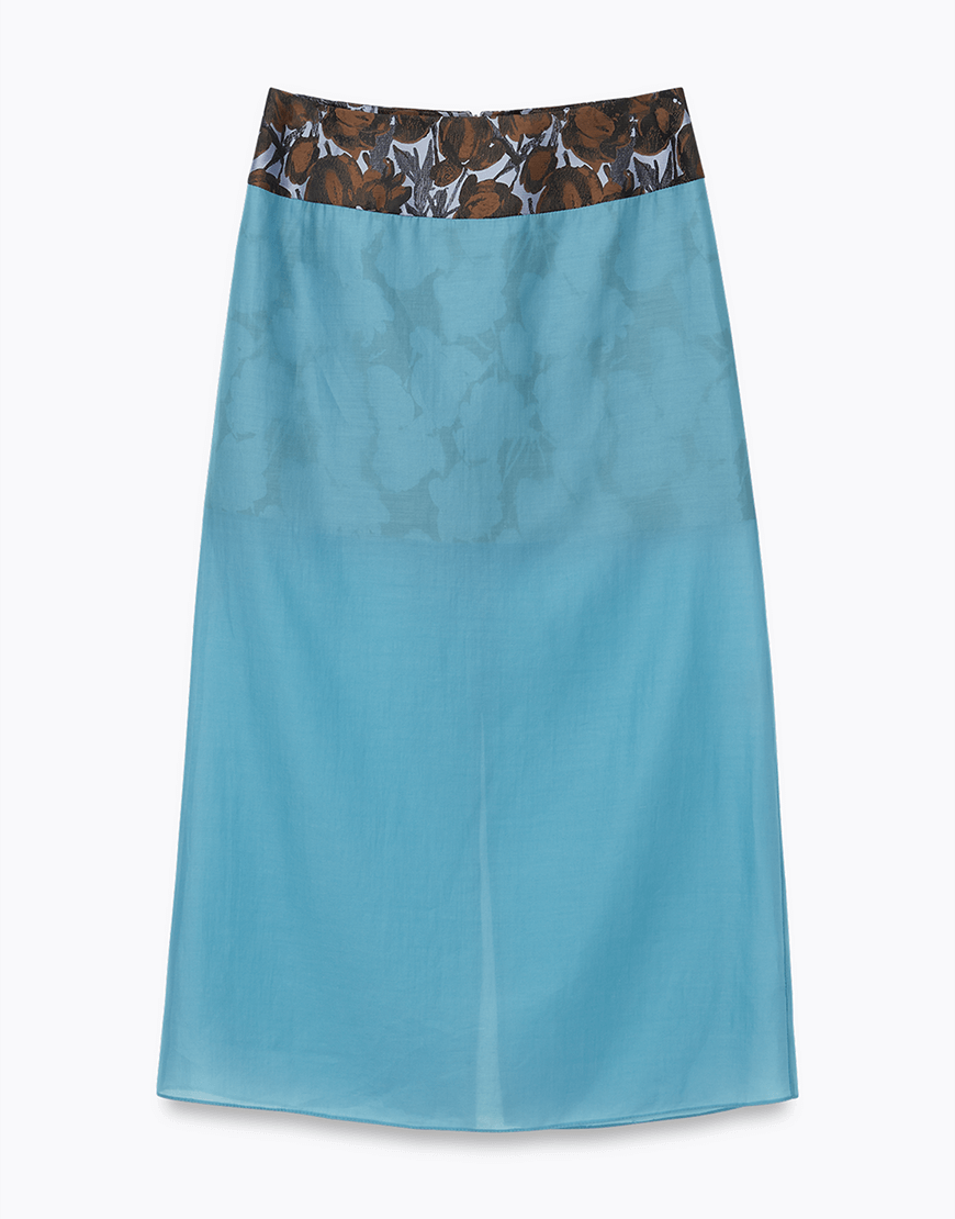 Доставка впродовж 5-7 робочих днівСпідниця міді розслабленого силуету з шовковистого напівпрозорого тенселу. Оздоблена молочним поясом та внутрішньою спідницею з віскози. Застібається на блискавку.