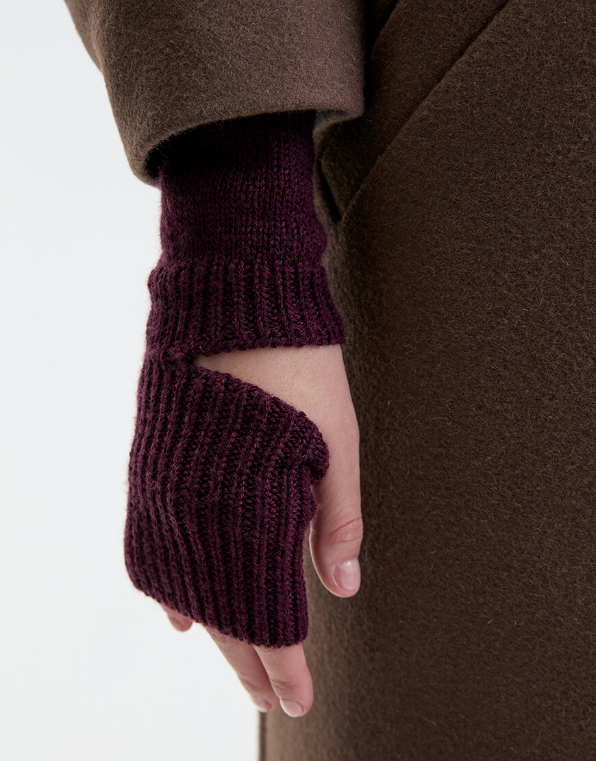 В’язані мітенки з розрізом на один палець. Рукавиці виконані з ніжної вовни з кашеміром.