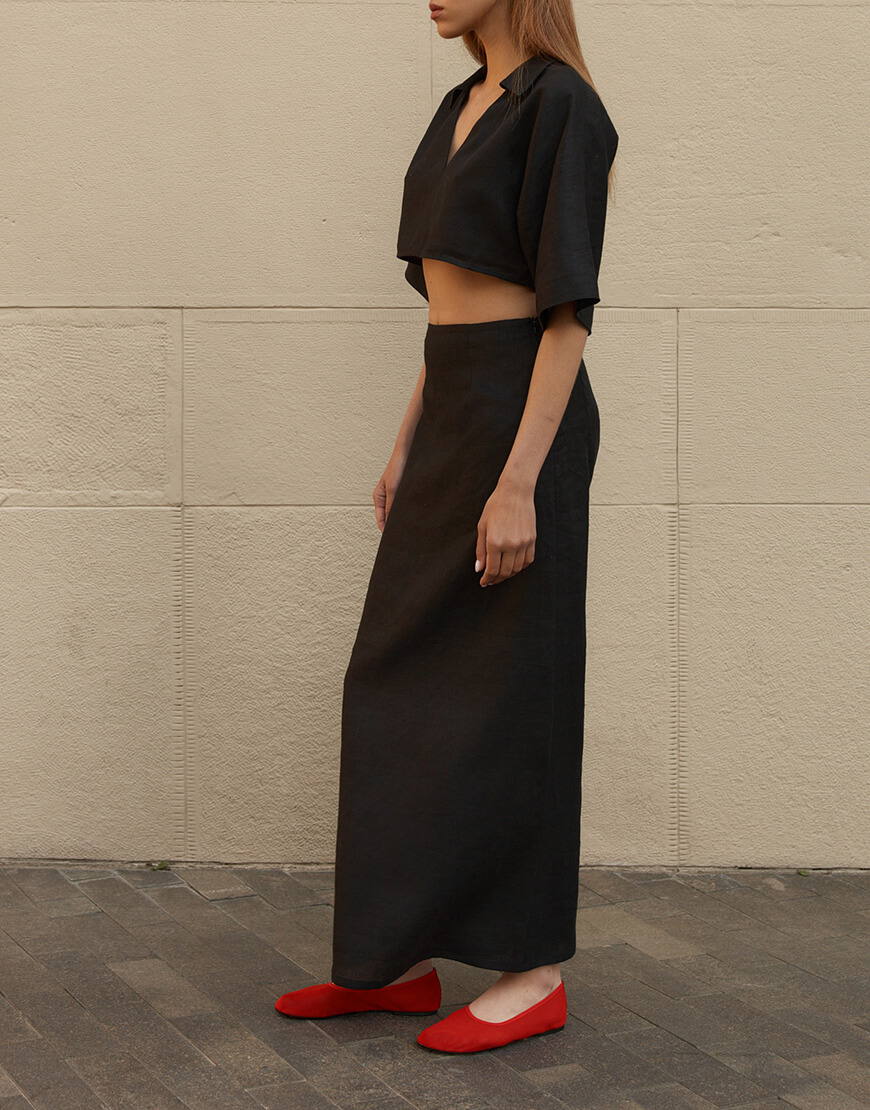 S: талія 76 см, стегна 101 см, довжина верху 43,7 см, довжина спідниці 100 см