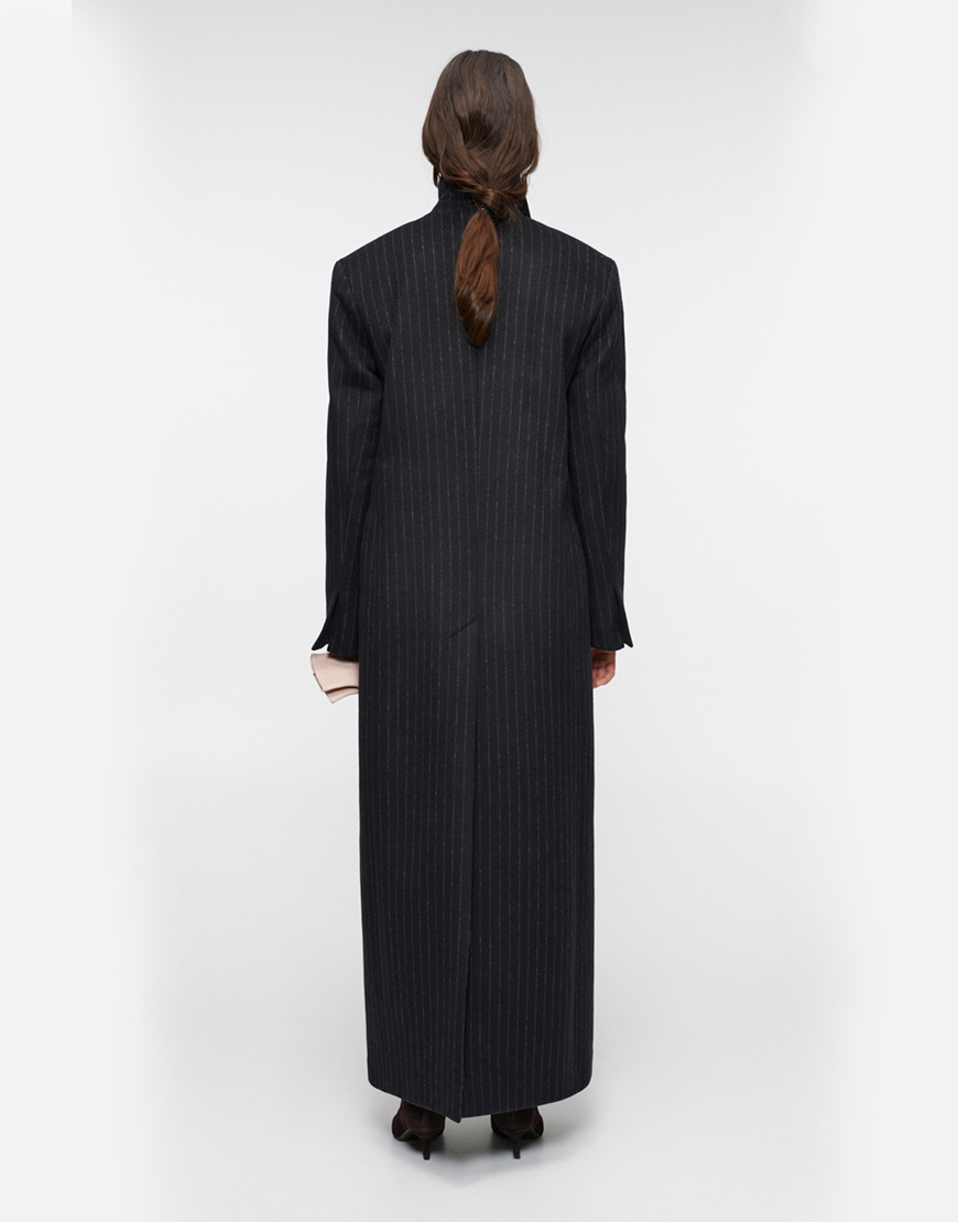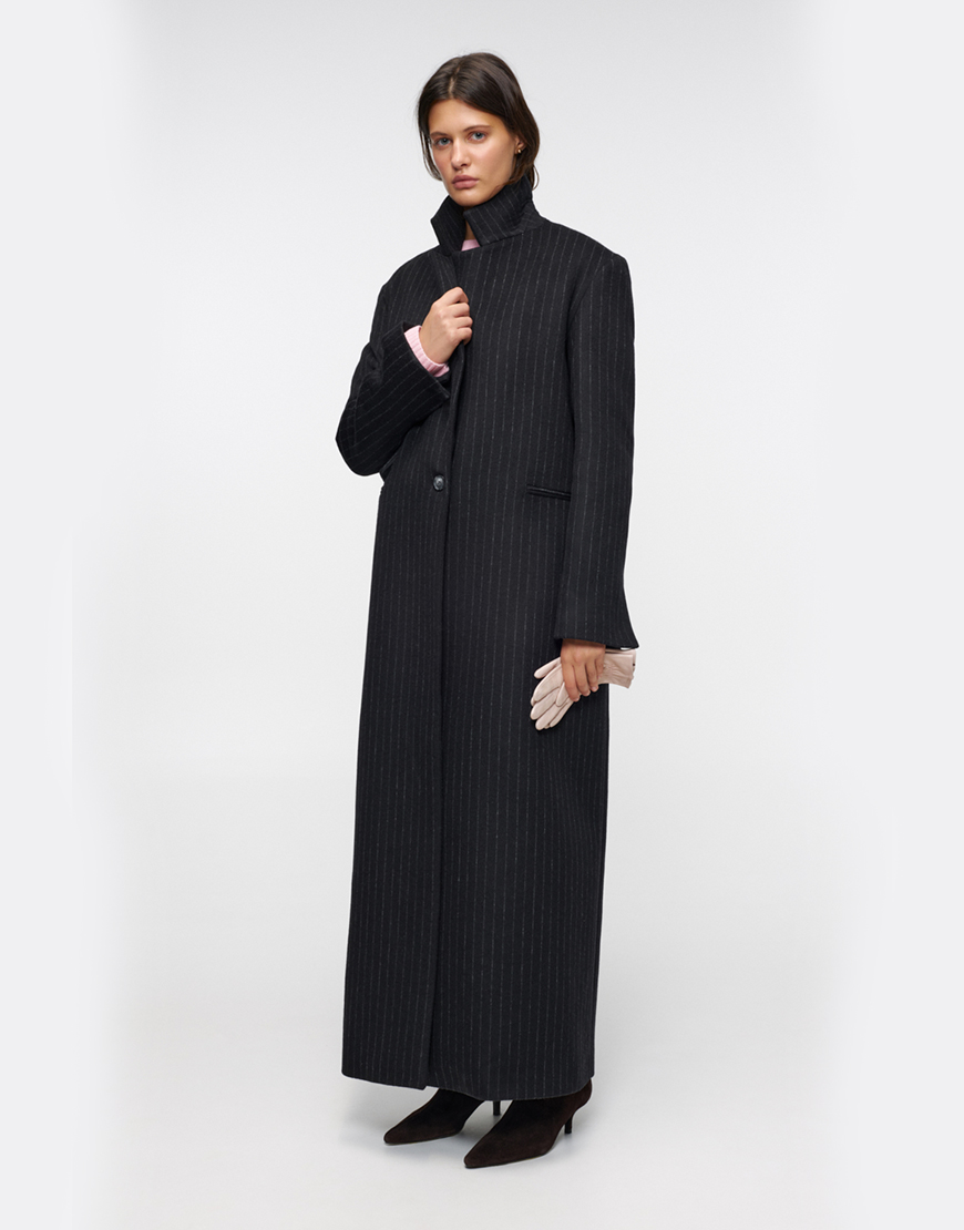 Доставка впродовж 5-7 робочих днівЕлегантне пальто максі-довжини з класичним лацканом та вузькою смужкою. Застібається на гудзик та має універсальний темно-графітовий колір. Ідеальний варіант для створення стильних образів у холодну пору року. Виконане з якісної тканини, яка забезпечить тепло.